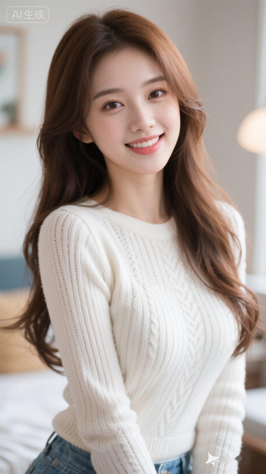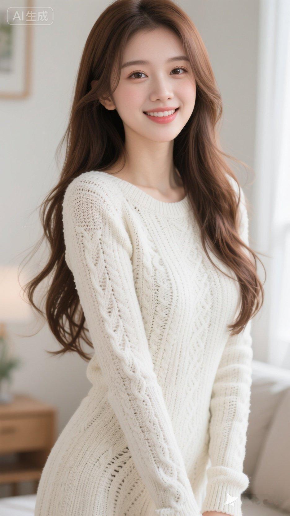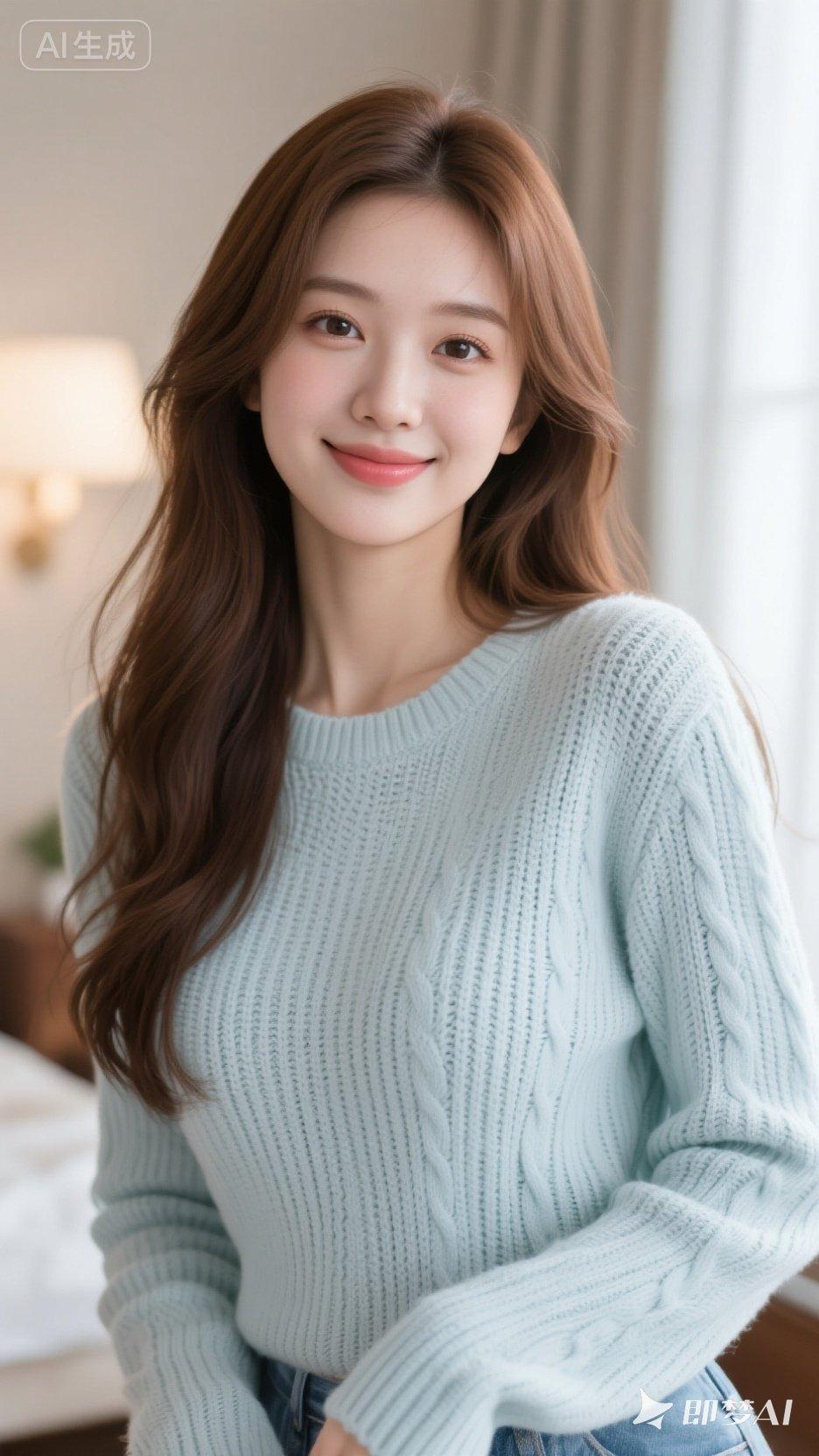 温柔甜美的冬日穿搭,毛衣搭配自然妆容,元气满满!🌟✨