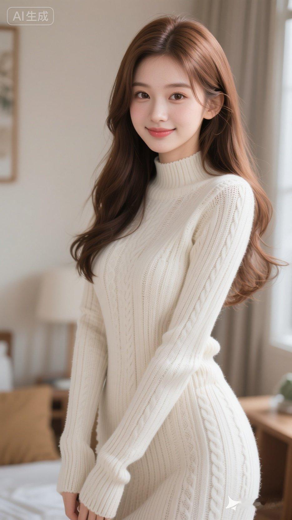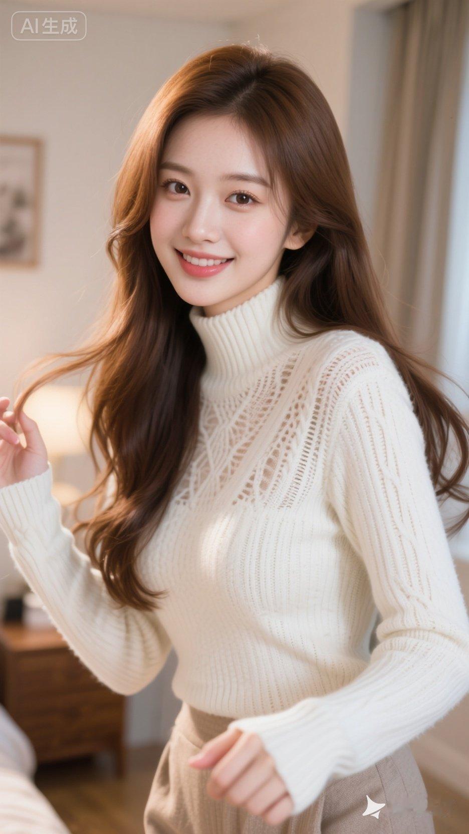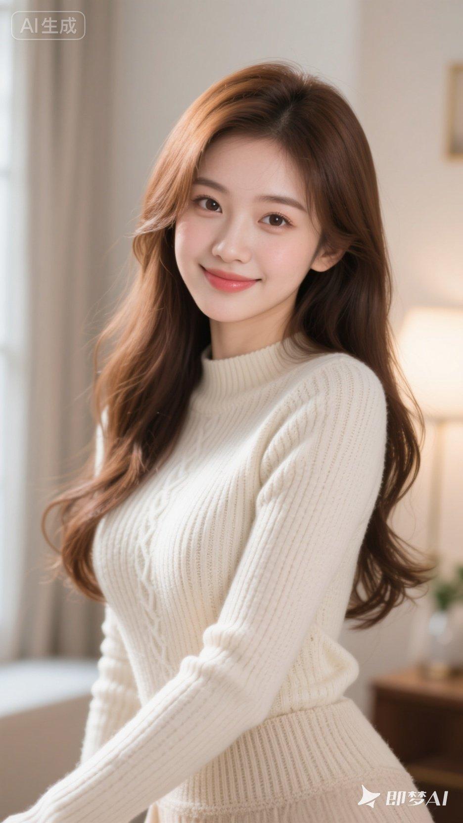 温柔甜美的冬日穿搭,毛衣搭配自然妆容,元气满满!🌟✨