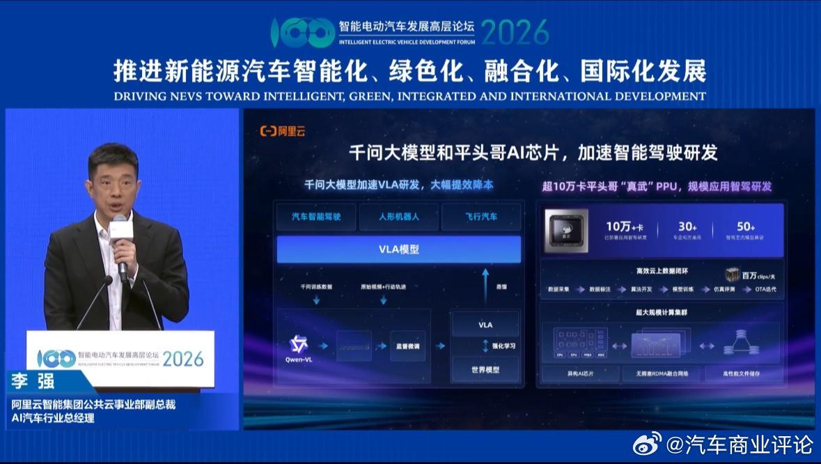 阿里云 4月11日,在2026智能电动汽车发展高层论坛上,阿里云智能集团公共云事业部副总裁、AI汽车行业总经理李强透露,目前已有30多家车企和智驾方案提供商在阿里云上开展智驾研发,实际使用的平头哥自研"真武"PPU已突破10万卡,创下汽车行业在公共云平台上使用自研AI芯片的最大规模纪录。依托全栈自研的芯片、亚太第一的云计算基础设施,以及全球最强的开源模型“千问”,阿里可以在芯片架构、云平台架构和模型架构上协同创新,从而实现在阿里云上训练和调用大模型时达到最高效率。据平头哥官网资料,平头哥自研AI芯片“真武810E”采用自研并行计算架构和片间互联技术,配合全栈自研软件栈,实现软硬件全自研。其内存为96G HBM2e,片间互联带宽达到700 GB/s,可应用于AI训练、AI推理和自动驾驶。在3月19日的财报电话会上,阿里高层称平头哥自研AI芯片已累计规模化交付超过47万片,60%以上被外部客户采用,成功适配了400余家企业的AI任务需求,这些客户覆盖互联网、金融服务、自动驾驶等前沿领域。