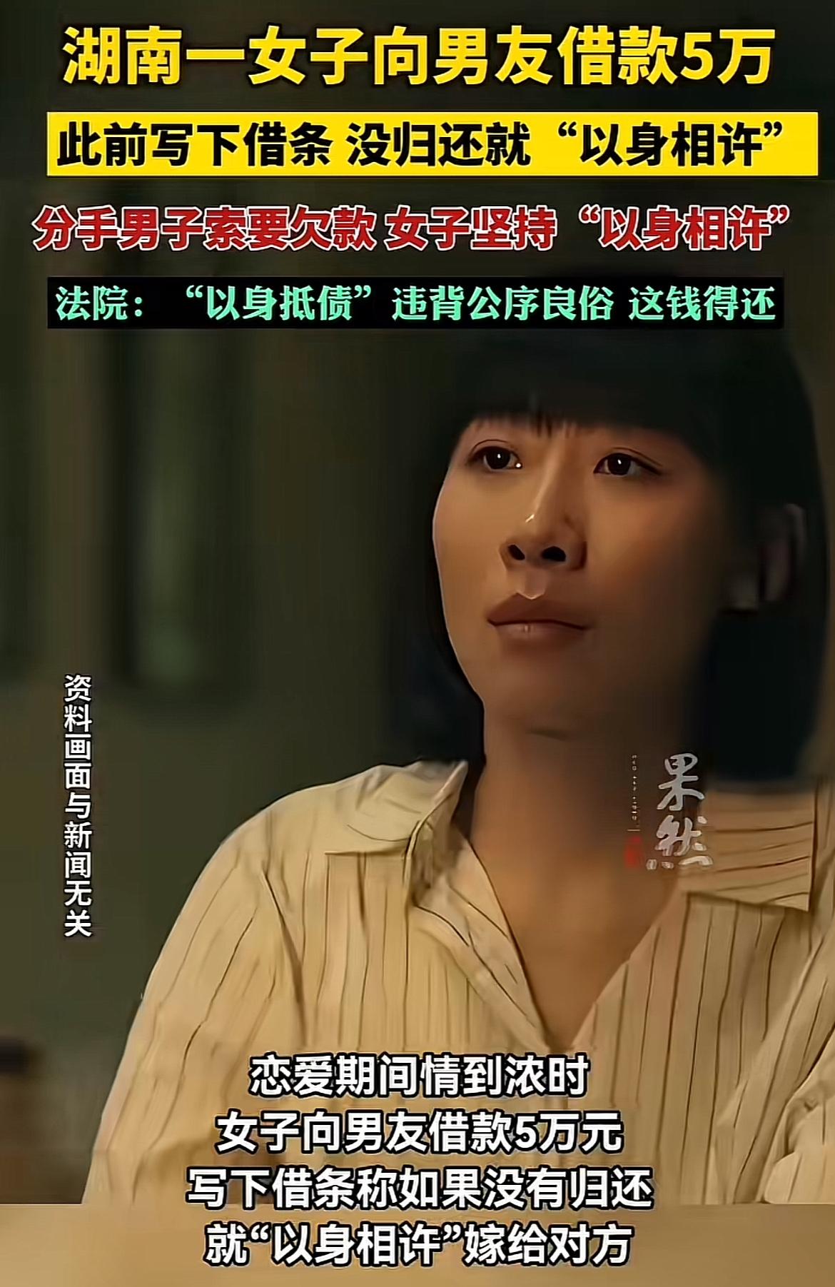 湖南益阳这起情侣借款纠纷太离谱!女子贾某向男友罗某借5万,借条上加注“若未归还,以身相许嫁给对方”。分手之后,罗某催款,贾某竟要“以身抵债”,不愿还钱只想成婚。这算盘打得震天响,把婚姻当交易,简直是对感情和法律的双重亵渎。