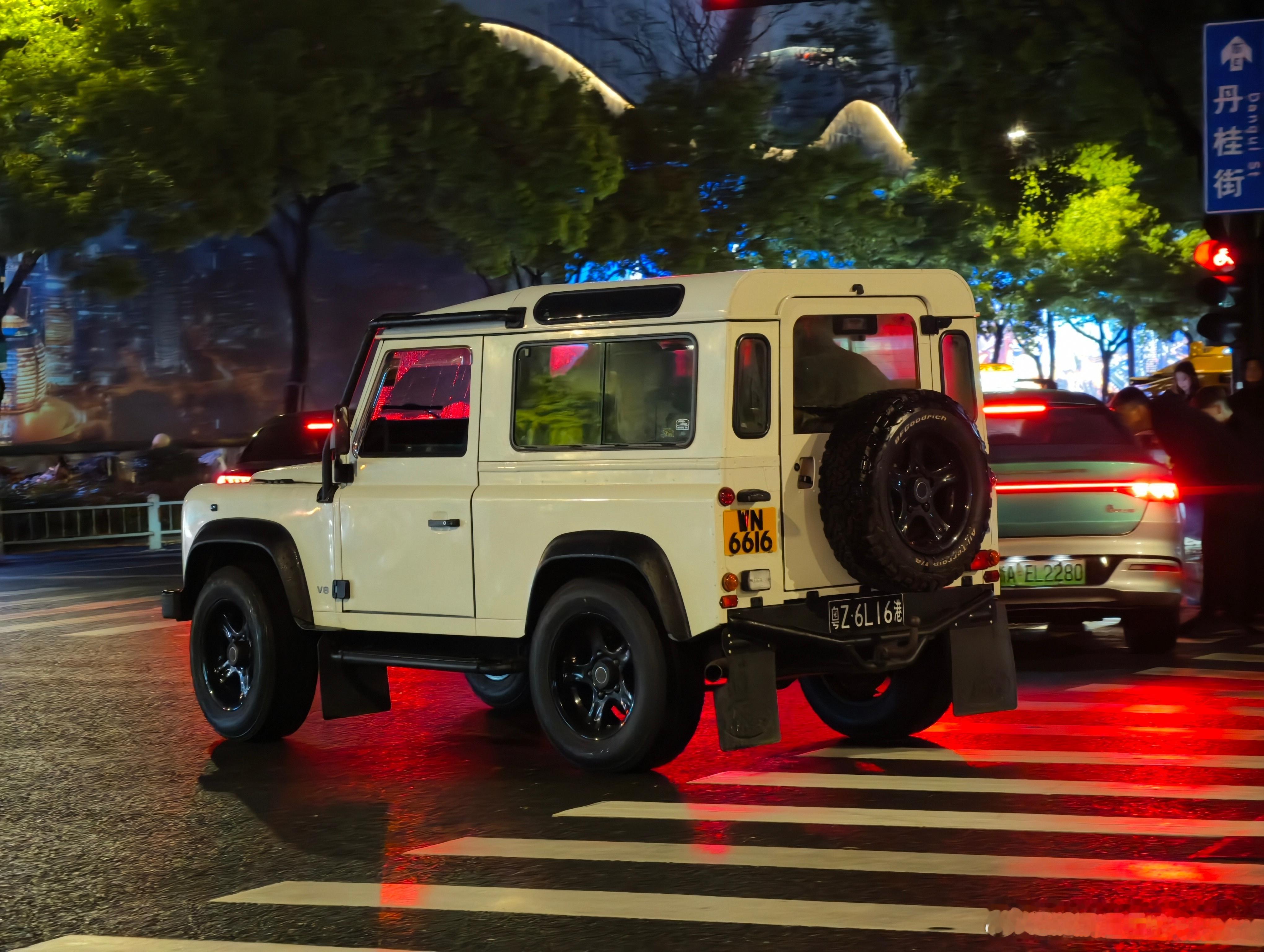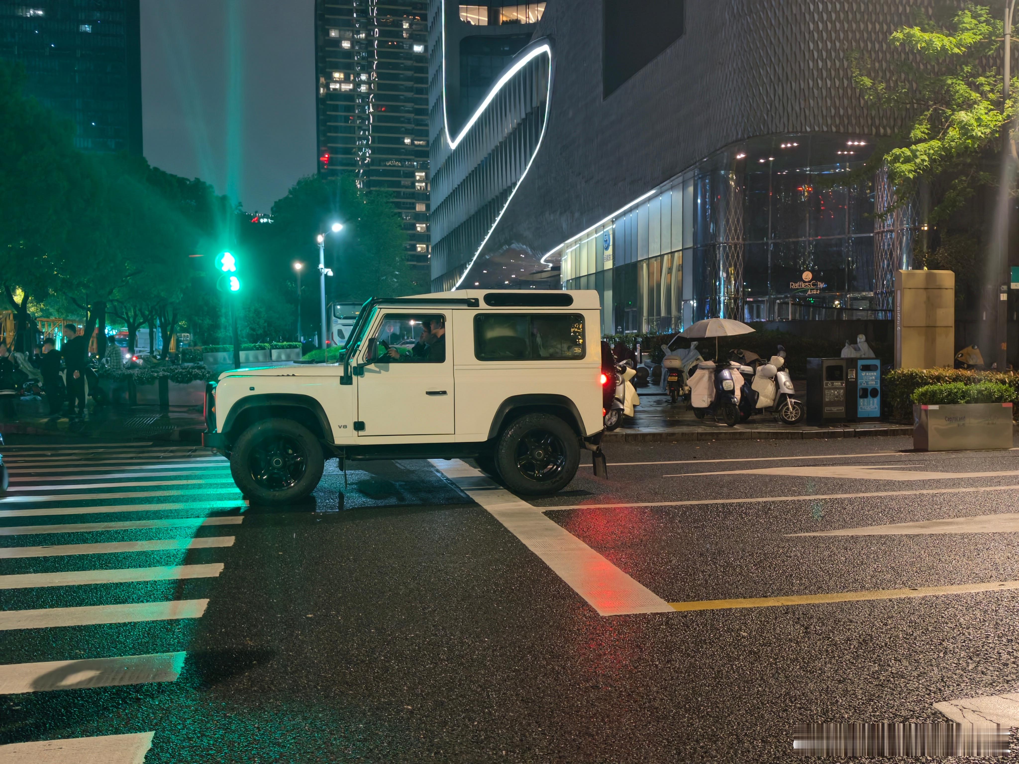 偶遇路虎卫士90超短轴、V8方盒子传奇车型啊那个“阿尔卑斯之窗”也真是经典。汽场全开大v聊车 杭州·钱江新城