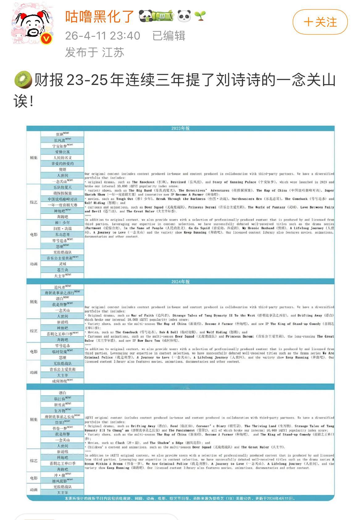大爆剧就是大爆剧,🥝财报2023-25年连续三年提了刘诗诗单扛的大爆剧之一《一