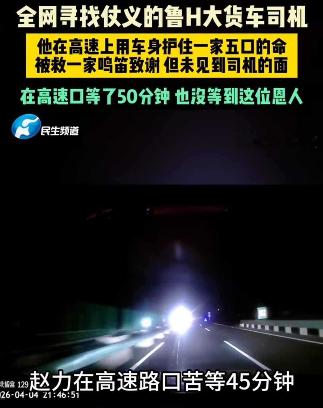 救命之恩,哪能一声喇叭就完事啊?赵大哥赶紧把车开到最近的高速出口,想着大货车也会下高速,他就在那里等。他在寒风里苦苦等了将近50分钟,眼睛一直盯着出口,可那辆挂着鲁H车牌的救命大货车,再也没有出现过。