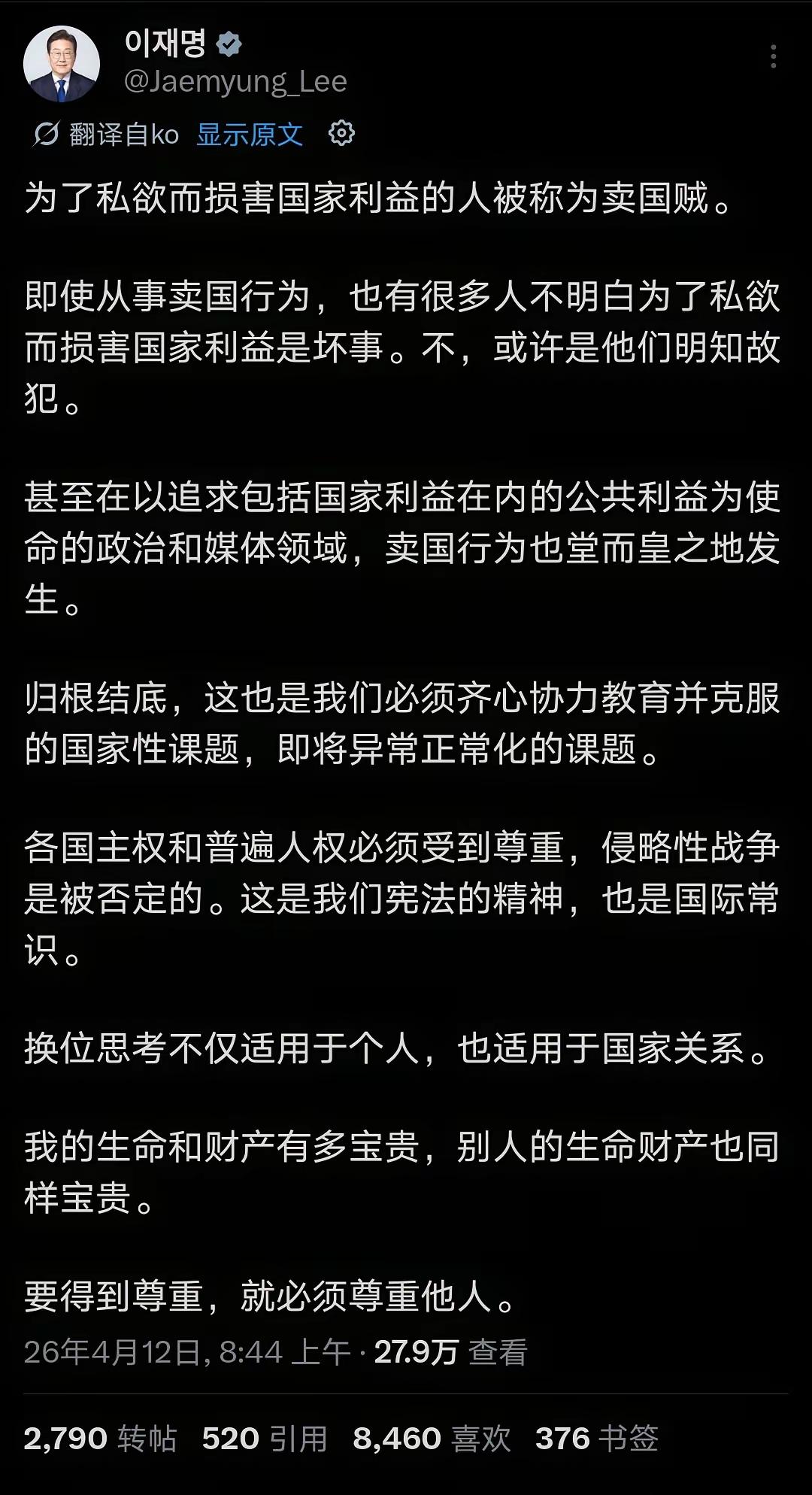 这两天感觉李在明在做一项重大的政策转向。 他是在向世界宣告韩国不是谁的附庸,韩国