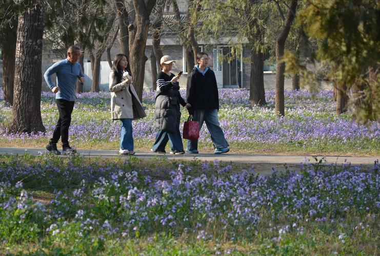 天坛公园迎来北京市区最大二月兰盛景,总面积约70万平方米,为京城春日罕见的大面积