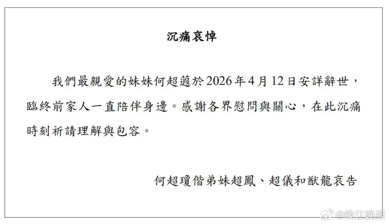 突发!何超琼妹妹何超蕸去世,生前未婚未育为人温和低调。4月12日,赌王家族传来