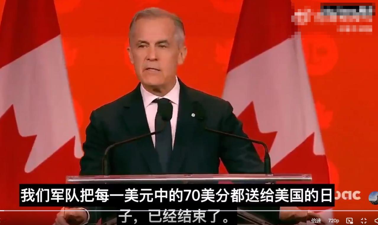 加拿大卡尼总理发表演说,表示加拿大军队把每1美元中的70美分,都送给美国的日子,已经彻底结束了。这么说美军还挺仁慈,加拿大军队的100美元,只需要转给美国70美元,这不还留下三成吗?