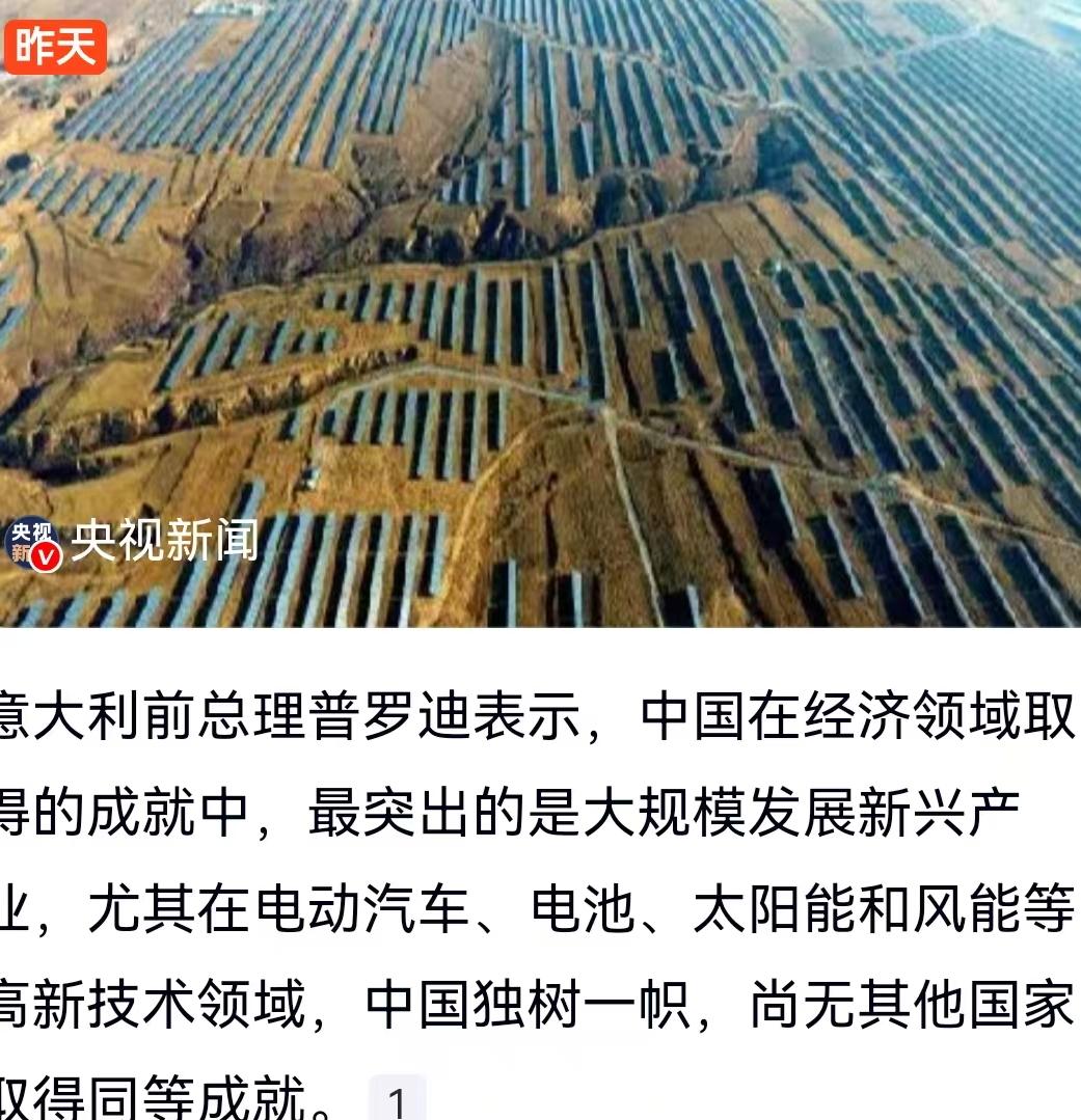 意大利前总理、资深经济学家罗马诺·普罗迪近日接受国际在线专访时,抛出了一个极其直白的观点。在审视全球经济版图的当下,他直接点出了中国经济成就里最硬核的部分:大规模发展新兴产业。普罗迪明确表示,在电动汽车、电池、太阳能和风能这几个高新技术领域,中国建立起了一个全新且规模庞大的生产体系,放眼望去,当今世界尚无任何一个其他国家取得了同等的成就,中国独树一帜。