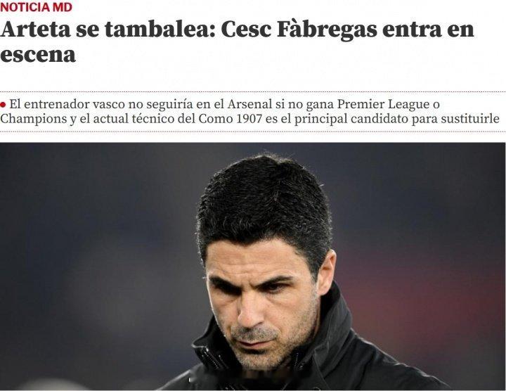 西媒《世界体育报》透露,在执教阿森纳7年后,阿尔特塔的合同将于2027年6月到期,续约谈判进行中。如果最终英超和欧冠双双落空,他的处境将发生根本性逆转。在这种情况下,阿尔特塔下赛季将不再执教阿森纳。俱乐部高层已经有了理想的替代人选,那就是法布雷加斯 阿森纳1比2伯恩茅斯 阿森纳著名教授