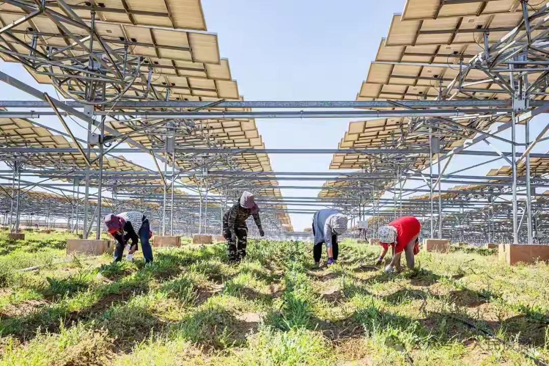 在新疆和田的塔克拉玛干沙漠腹地,人们就在光伏区里成功地种出了狼尾草,还试验种植了西红柿、茄子等作物,昔日的戈壁滩真的见到了绿色。