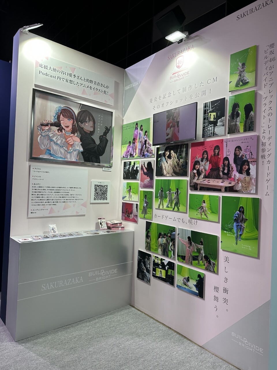 るんちゃん🌱①「アニプレックスブースにて、「櫻坂46×ビルディバイド-ブライト-」のパネルを展示していただいていました!嬉しいー!有難うございます!「櫻坂TCG発売記念スペシャルステージ」はこれまでの応援大使としての活動を振り返ったり、クイズをしましたー!🌸」