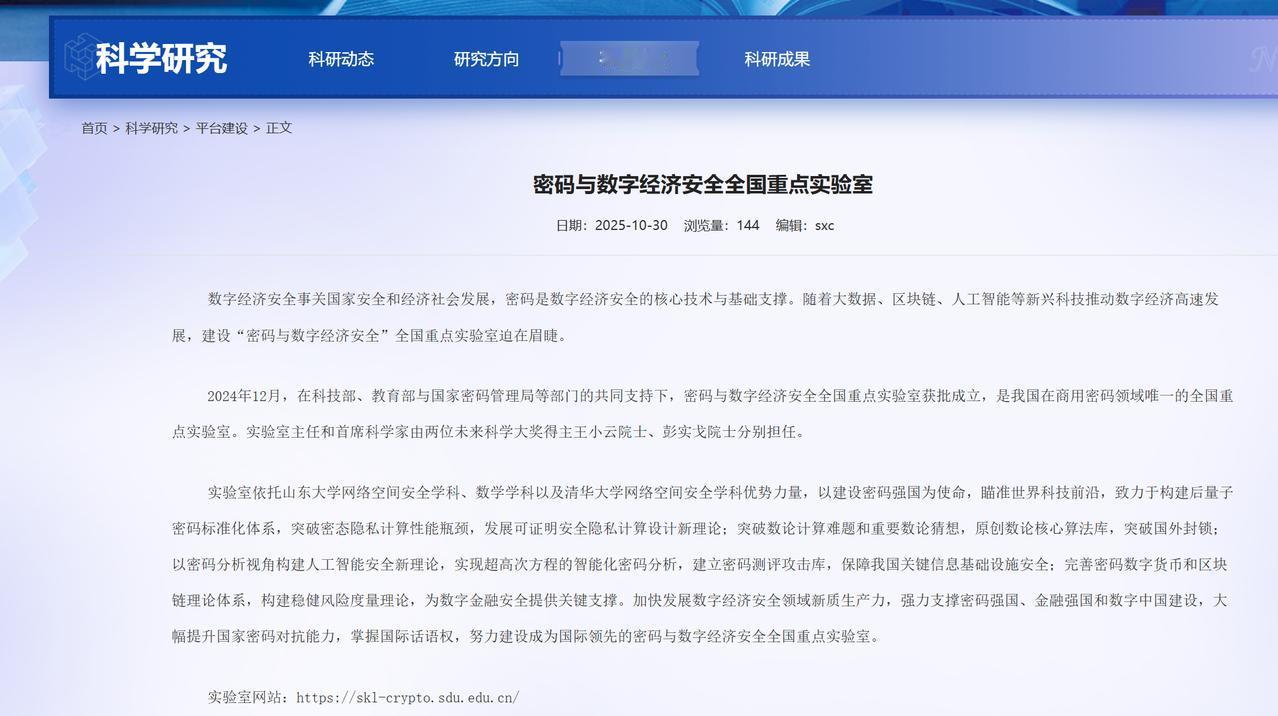 山东大学的密码学,在王小云院士的领衔下,目前拥有密码与数字经济安全全国重点实验室等多个国家级平台,在国内具有较强影响力。2026年计划招收2个专硕。