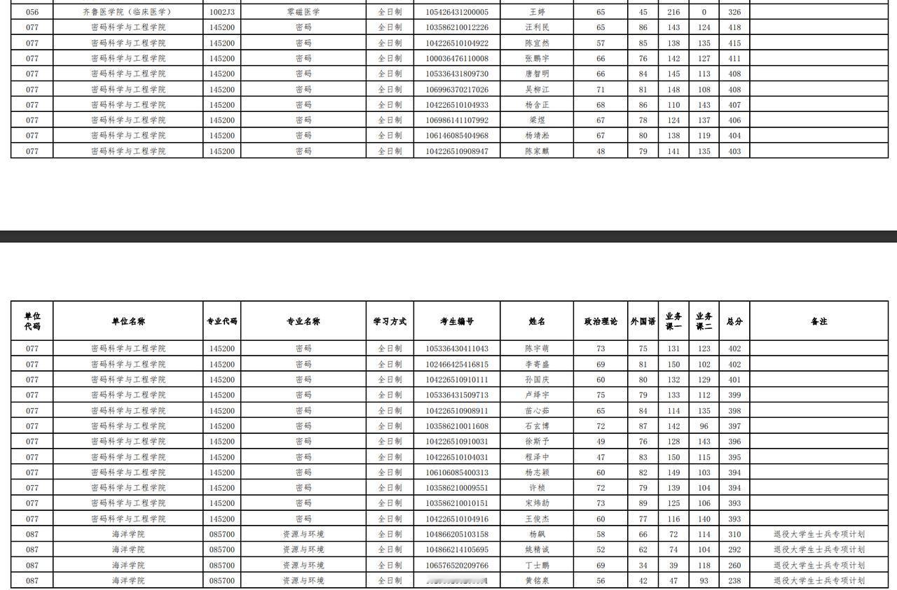 再看录取名单,3个山大,1个中科大;2名初试400多分的考生,无缘录取!真是几家欢喜几家愁!