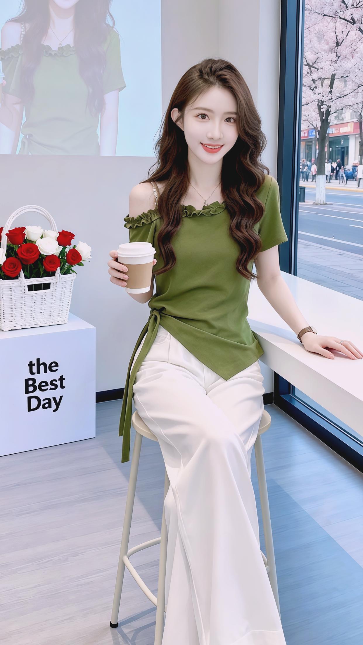 大码女装 时尚 穿搭 绿色 短袖t恤