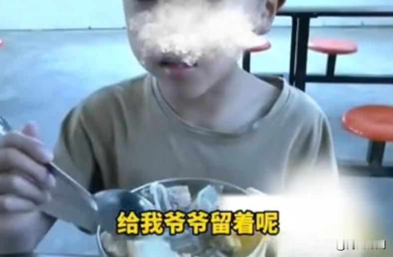 这份深藏心底的牵挂,化作了最质朴的行动。在学校吃饭时,他从不舍得吃餐里的肉,总是小心翼翼地藏起来,偷偷带回家给爷爷。他想把最好的留给爷爷,只想让爷爷身体能好一点,能陪自己更久一点。