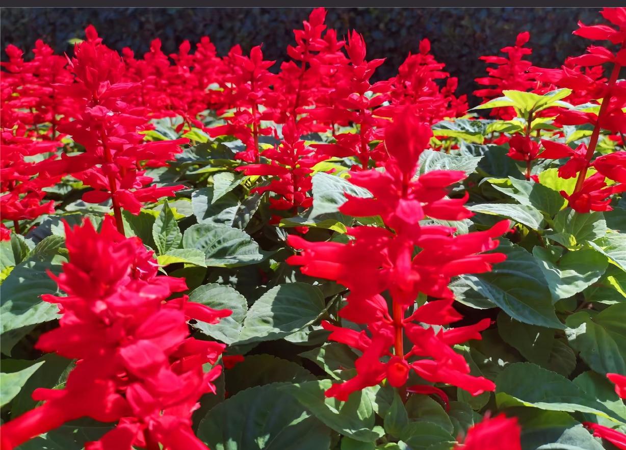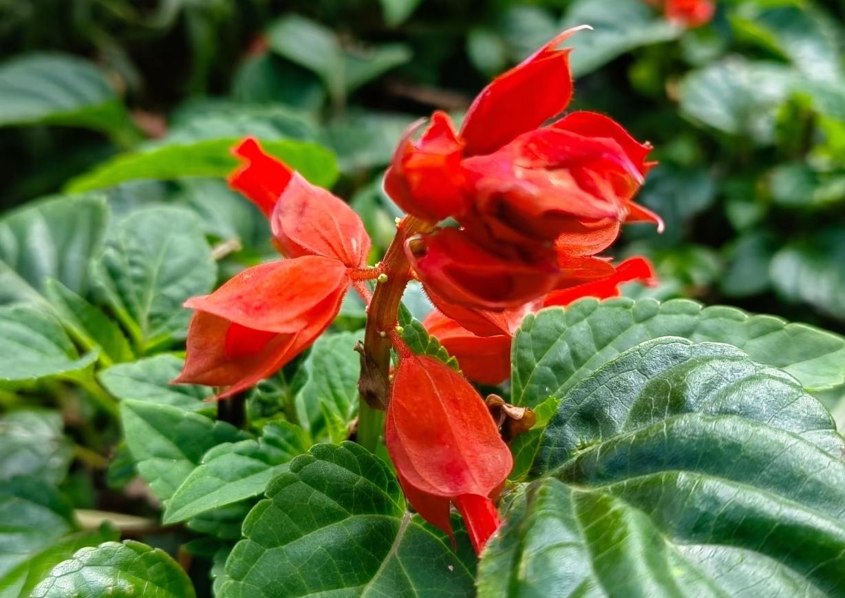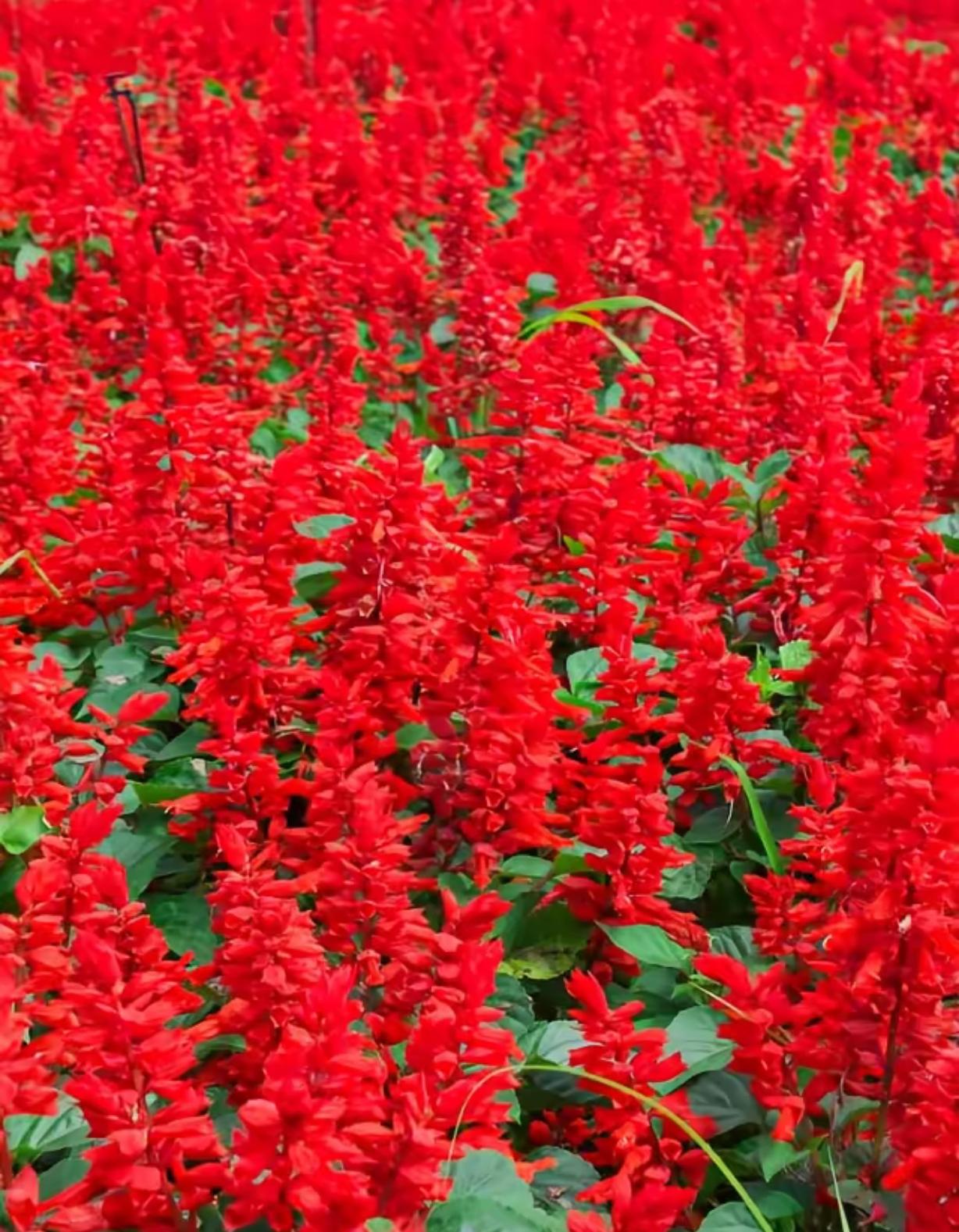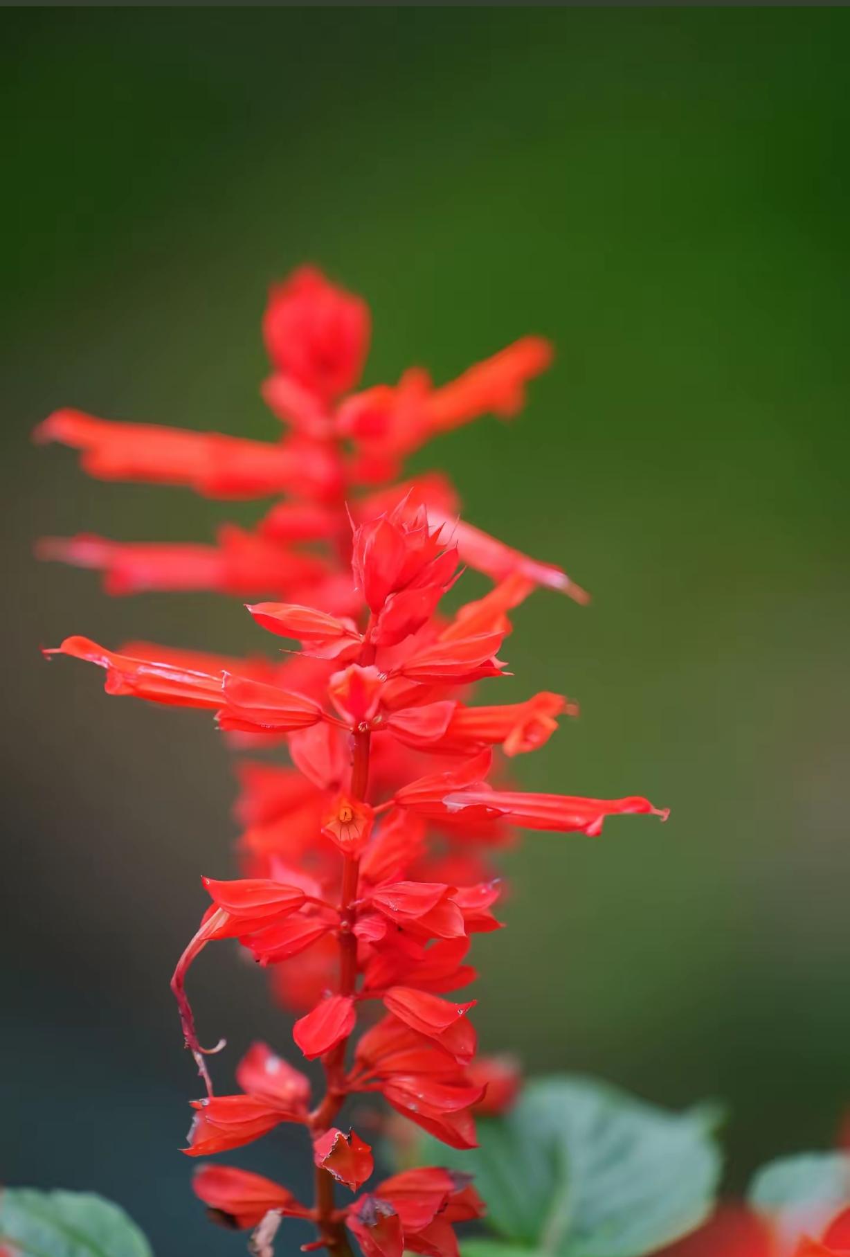 串红花在花坛、庭院里很常见,一到花期,那红彤彤的花串格外引人注目。它的花朵呈筒状,紧密排列在花茎上,远看就像一串串燃烧的火焰。每次看到串红花,都感觉像是看到了一把把热情的火炬,瞬间让周围都变得热闹起来。