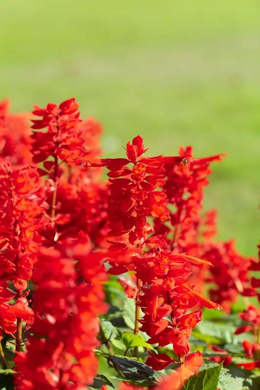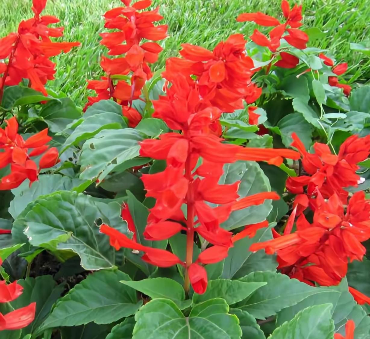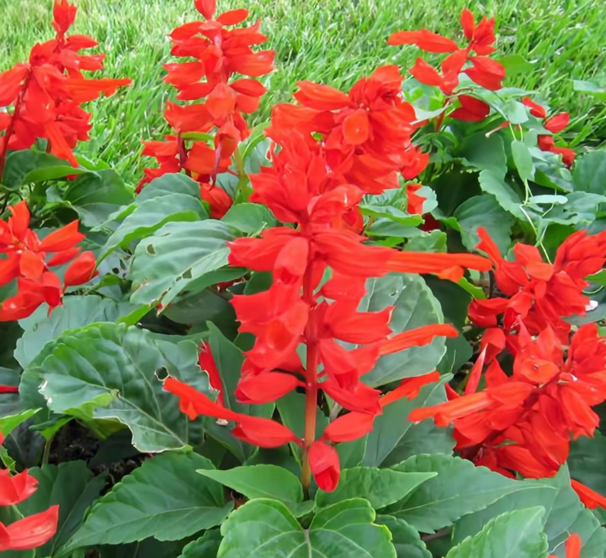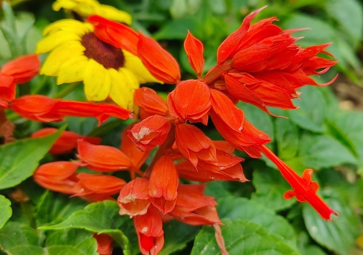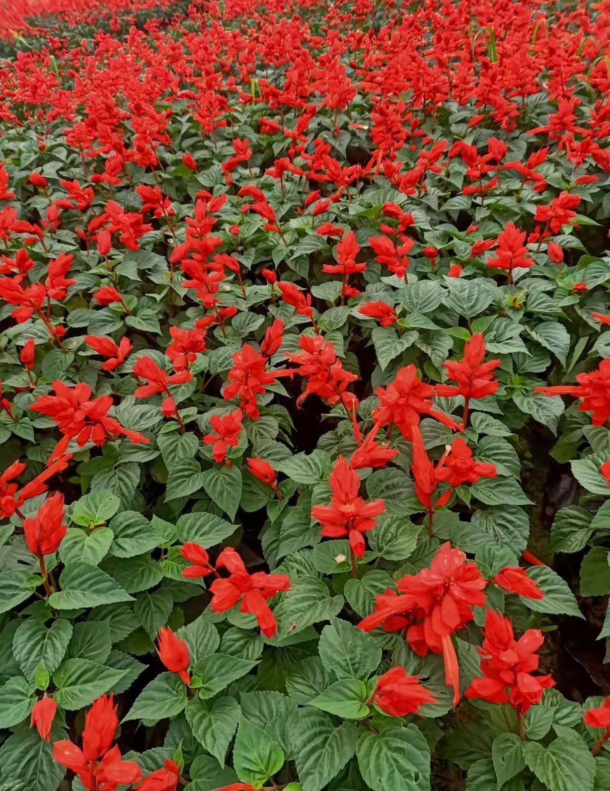串红花在花坛、庭院里很常见,一到花期,那红彤彤的花串格外引人注目。它的花朵呈筒状,紧密排列在花茎上,远看就像一串串燃烧的火焰。每次看到串红花,都感觉像是看到了一把把热情的火炬,瞬间让周围都变得热闹起来。
