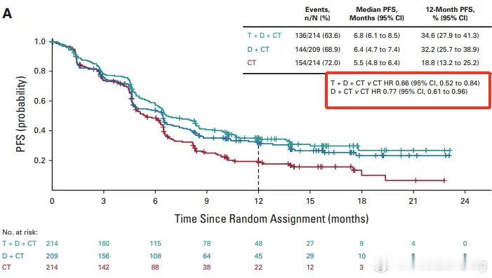 疾病进展或死亡风险降低28%(HR=0.72;95%CI 0.60-0.86;p=0.00031)。5 年随访数据显示,OS 获益持续稳定(HR=0.76;95% CI 0.64-0.89),5 年 OS 率 15.7%,是单纯化疗组(6.8%)的两倍以上。