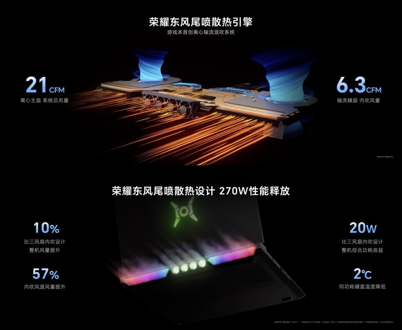 刚刚荣耀PC技术沟通会,荣耀“打洲本”、荣耀WIN游戏本、“养虾本”、MagicBook系列轻薄本等新品集中亮相,WIN游戏本首发东风尾喷散热引擎,2离心主扇+4轴流辅扇,21mm超薄机身实现高效散热,整机风量提升10%,5070Ti配置至高270W满血释放,告别发烫卡顿;搭配静音模式3.0,38dB图书馆级静音,三网加速下载效率提升4倍,3D防眩晕技术体验拉满!