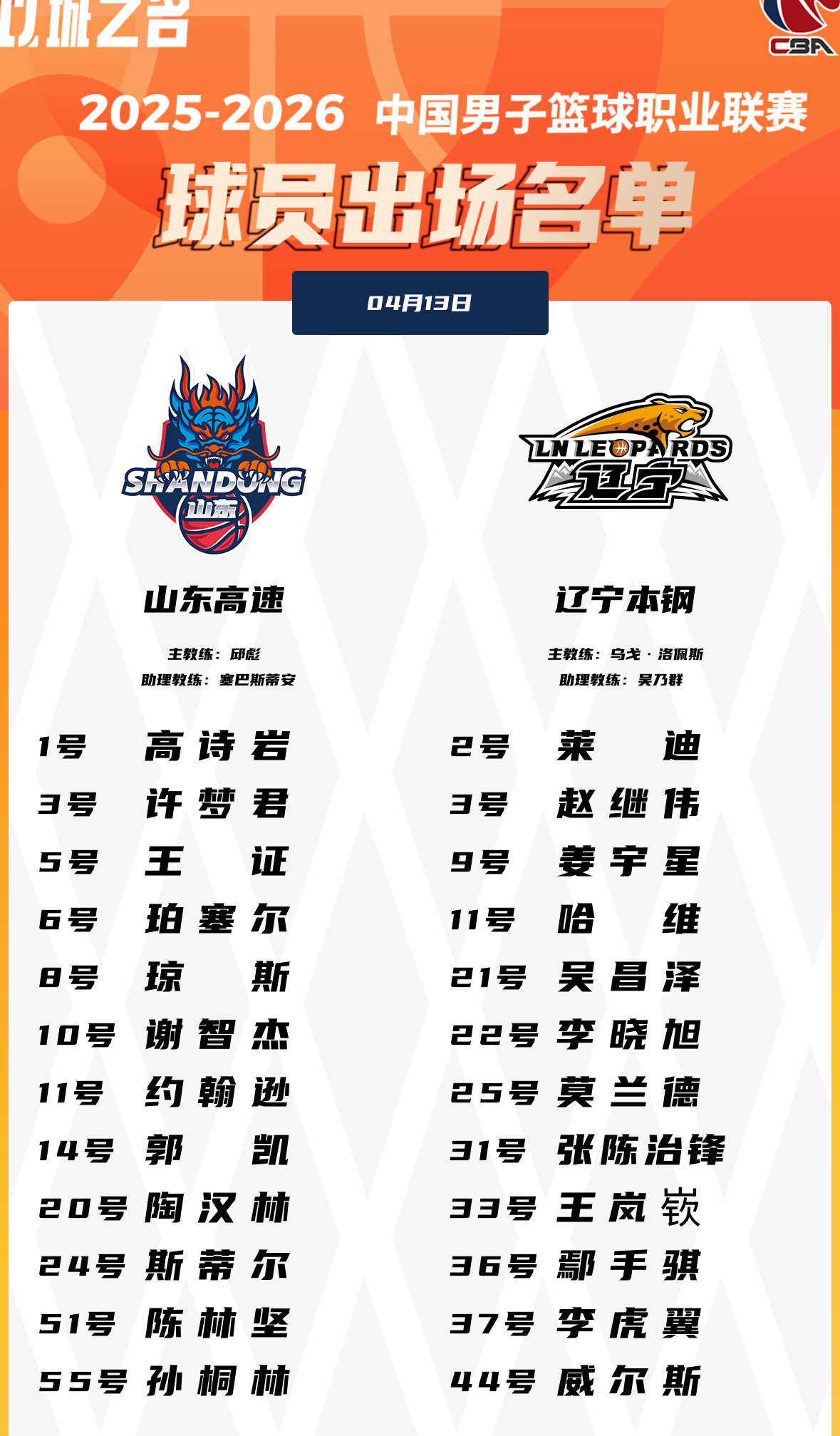 辽宁队今晚客场对阵山东赛前双方大名单辽宁男篮