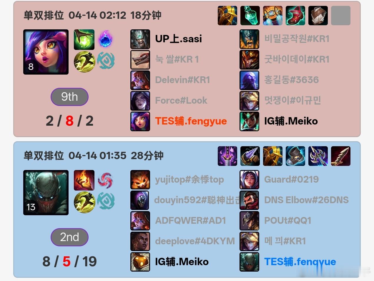 Meiko与Fengyue半夜在韩服rank撞车两把ig与tes生死战想看ig打