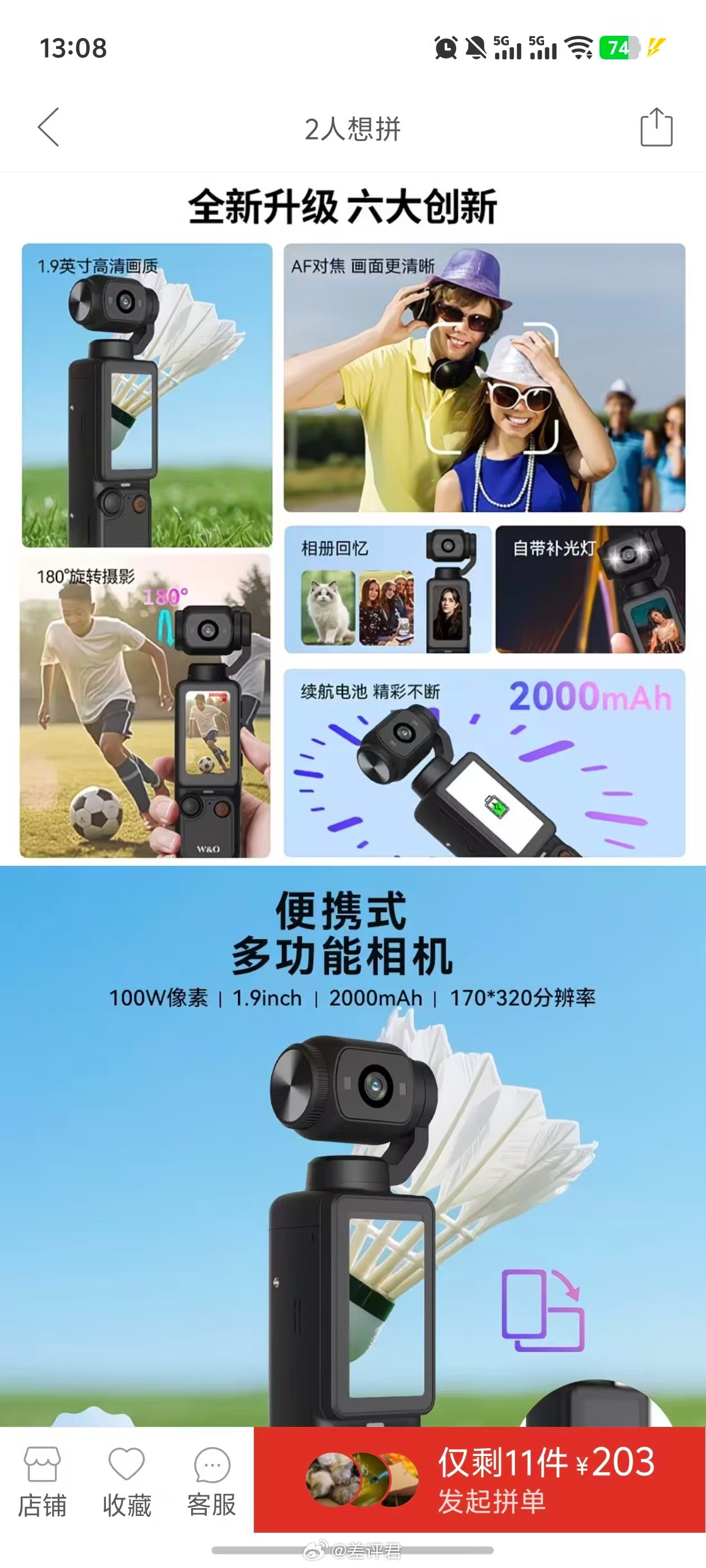 #差评说数码# 你们在等 Pocket 4 以及类似物的时候,华强北早就把把行车记录仪/家用监控摄像头做成了手持云台相机的形状