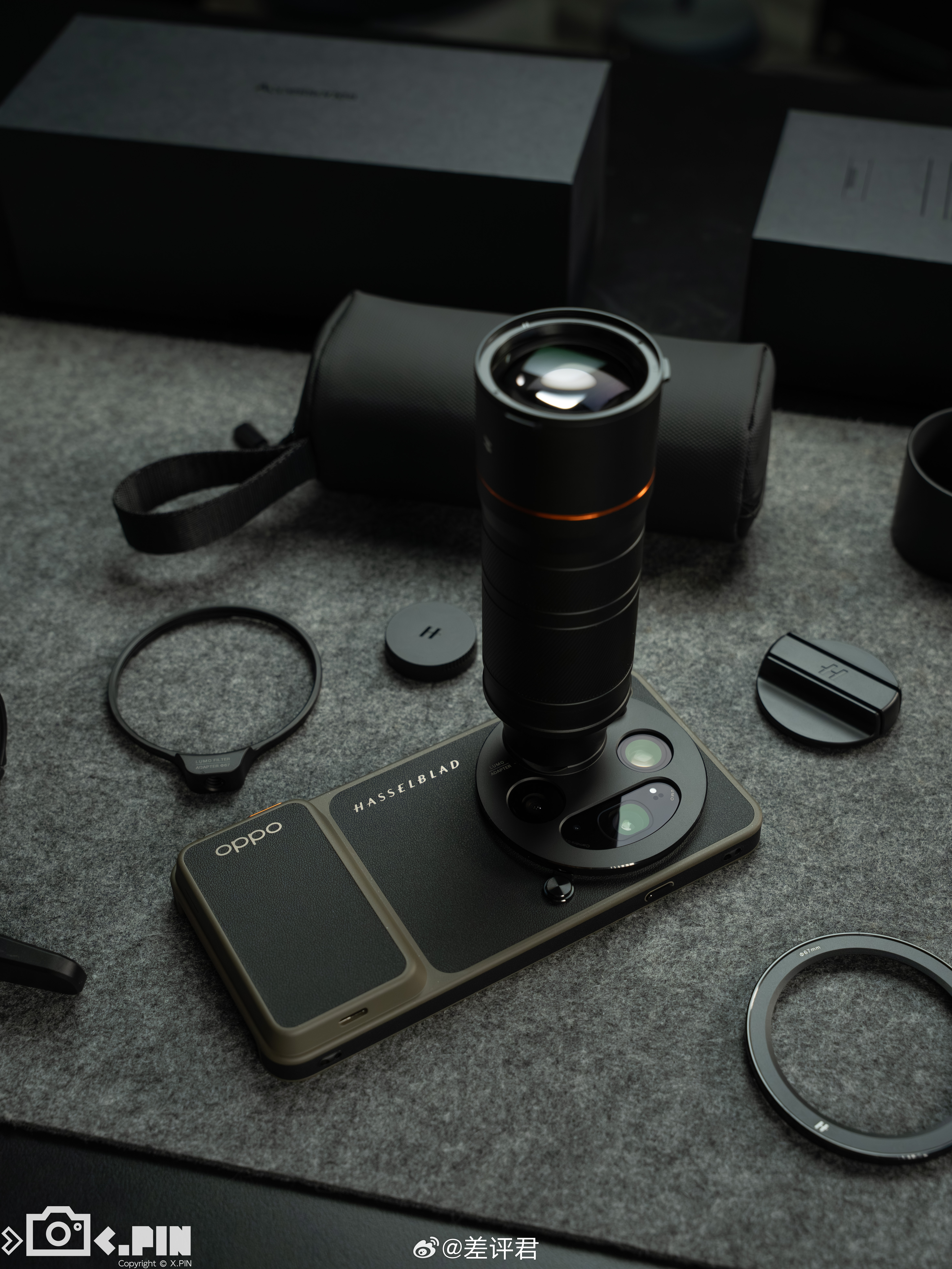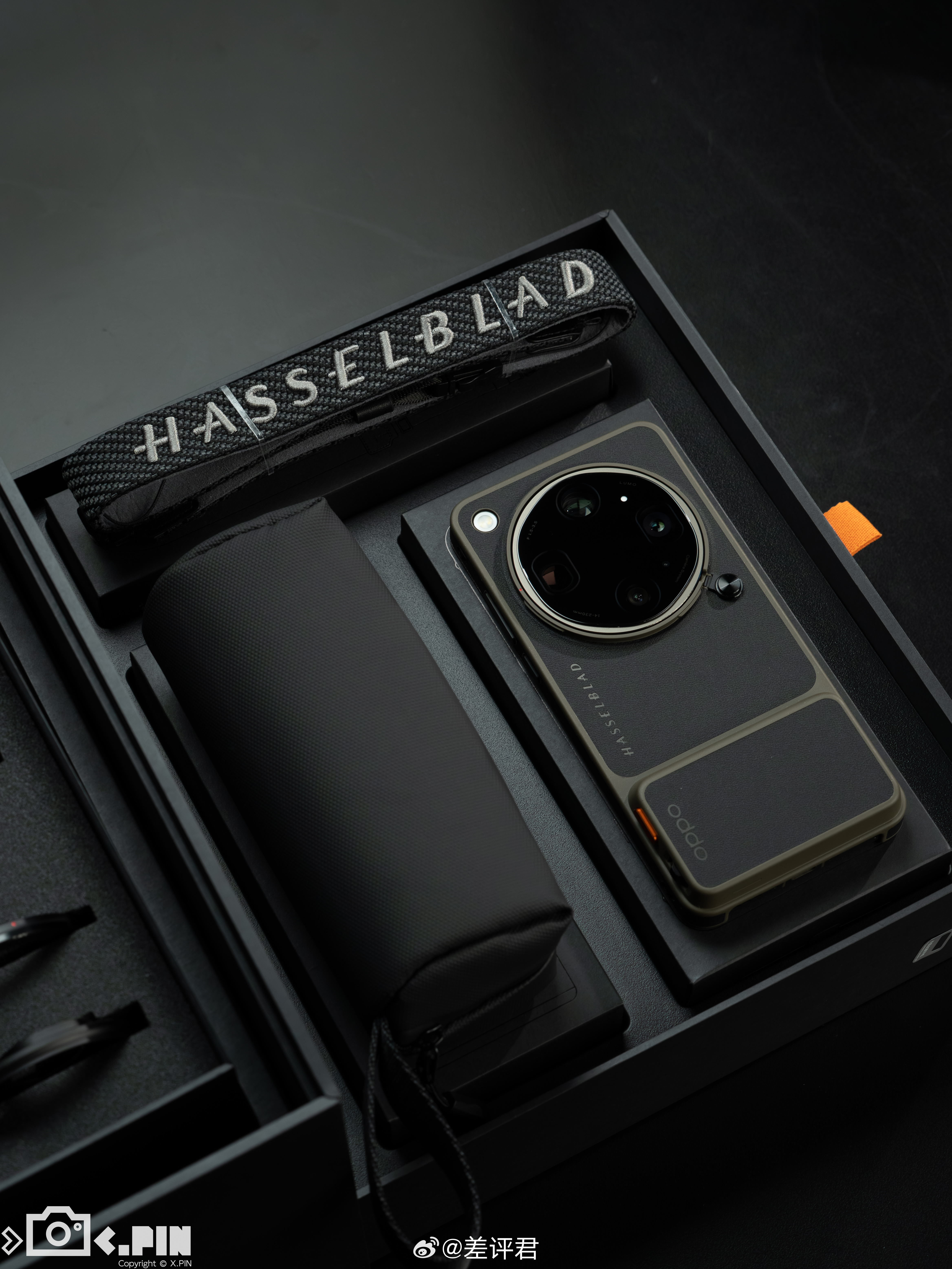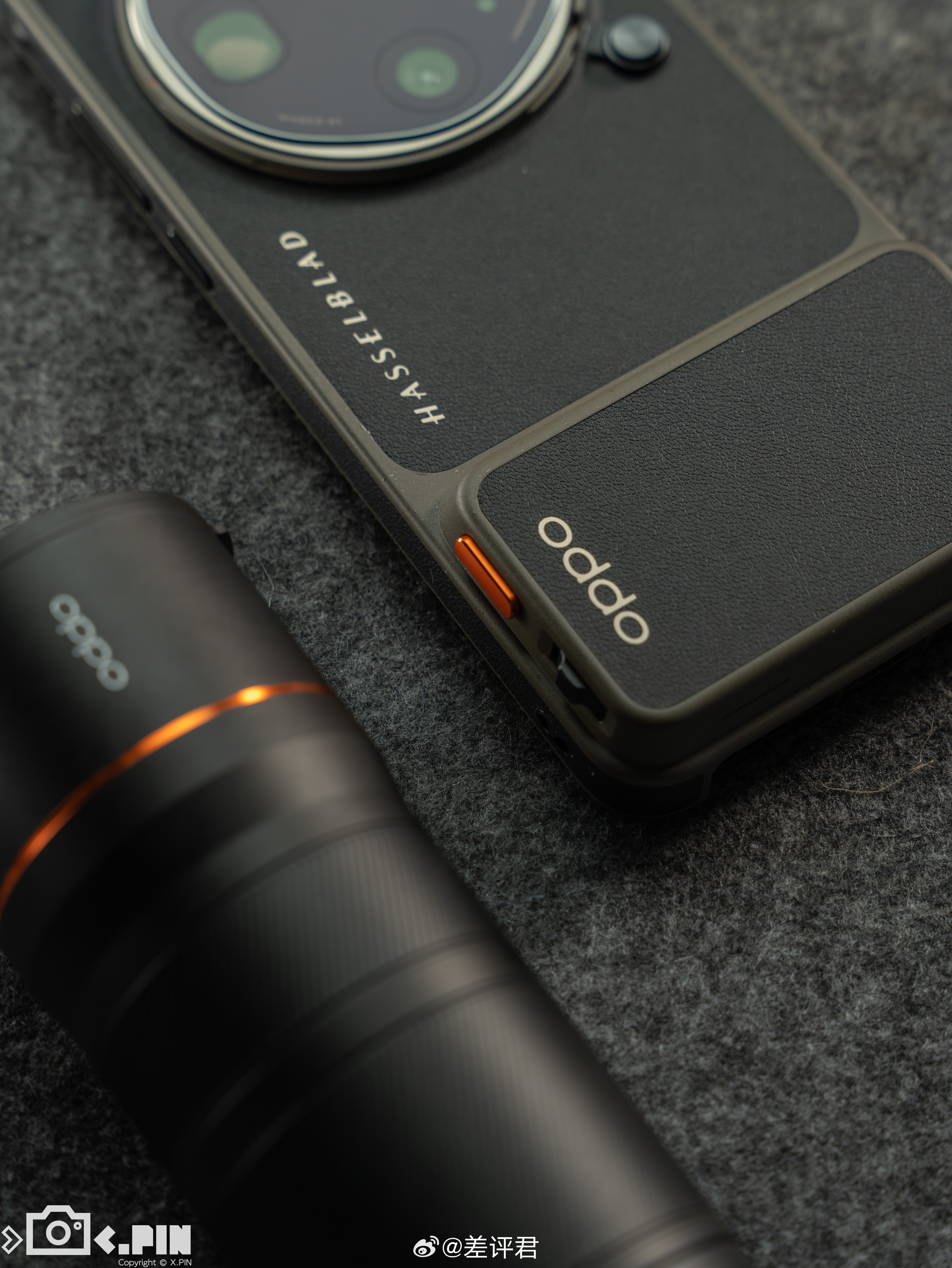#差评说数码# OPPO Find X9 Ultra 哈苏大地探索家大师套装,哈苏味最纯正的一集来了。感觉这个大地苔原配色的拼皮设计真挺好看,皮革材质很有哈苏相机手柄的味道,配上相机按键、增距镜等地方的“哈苏橙”点缀,完全就是一台“小哈苏”嘛。