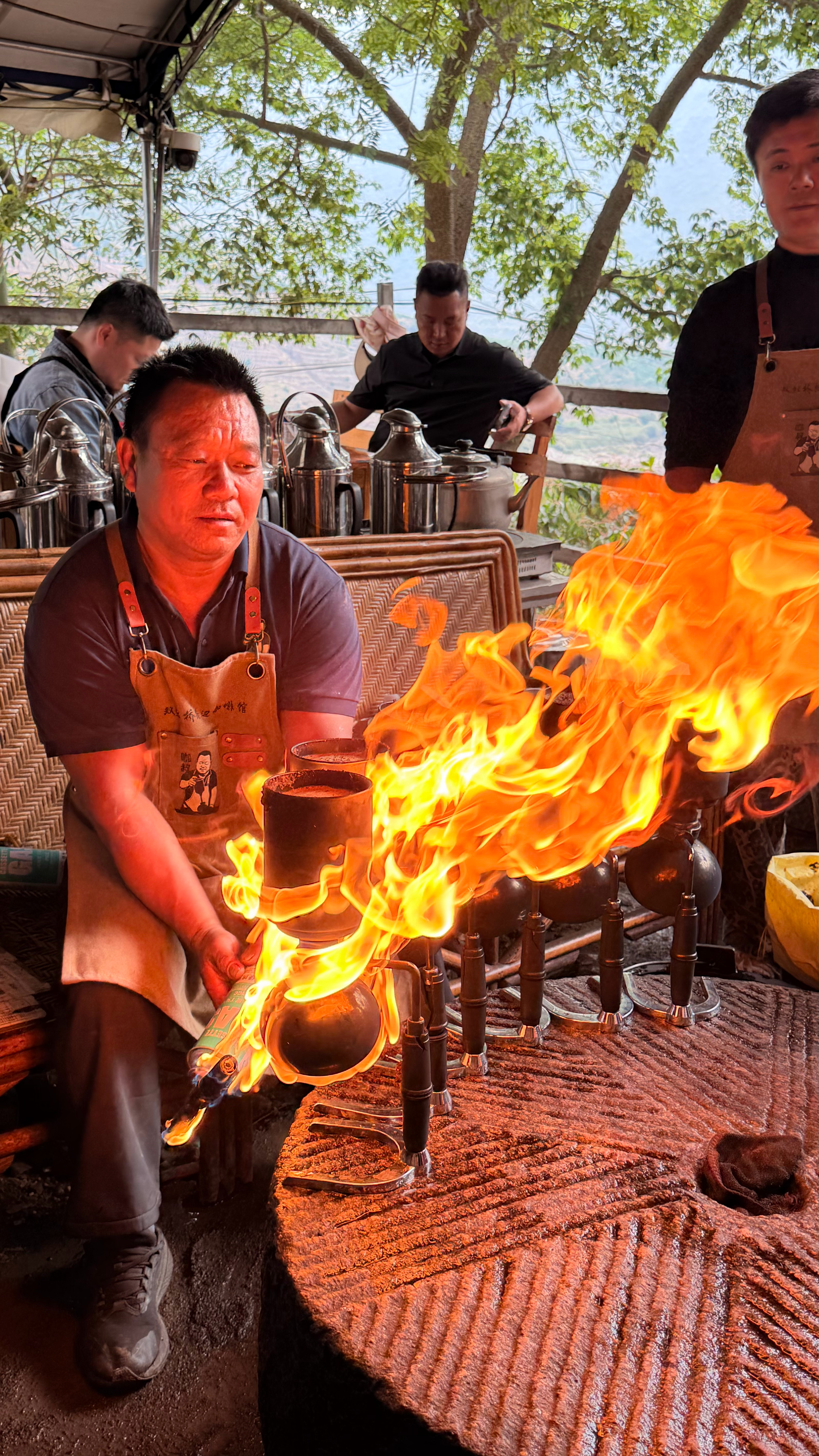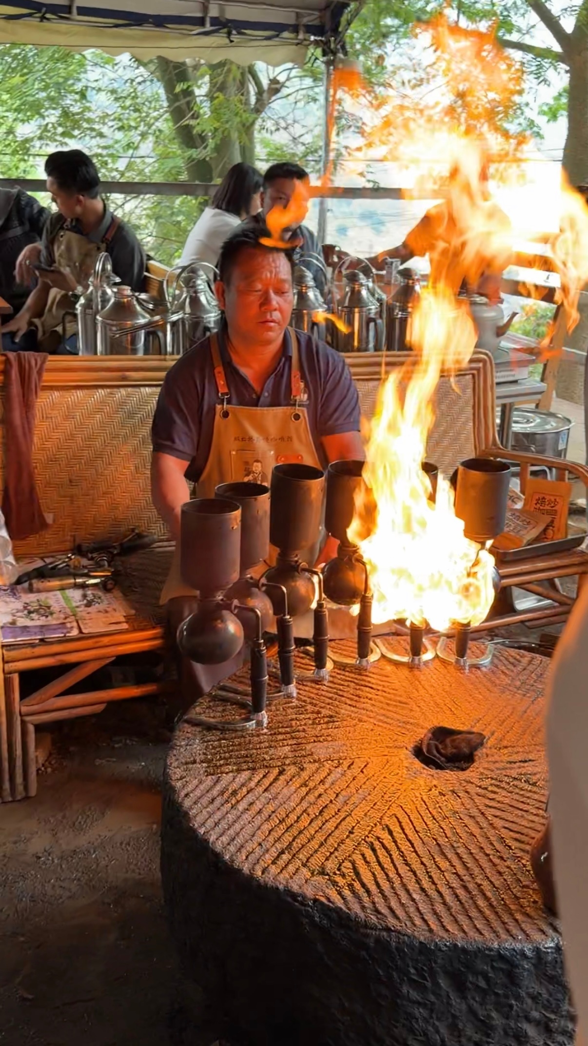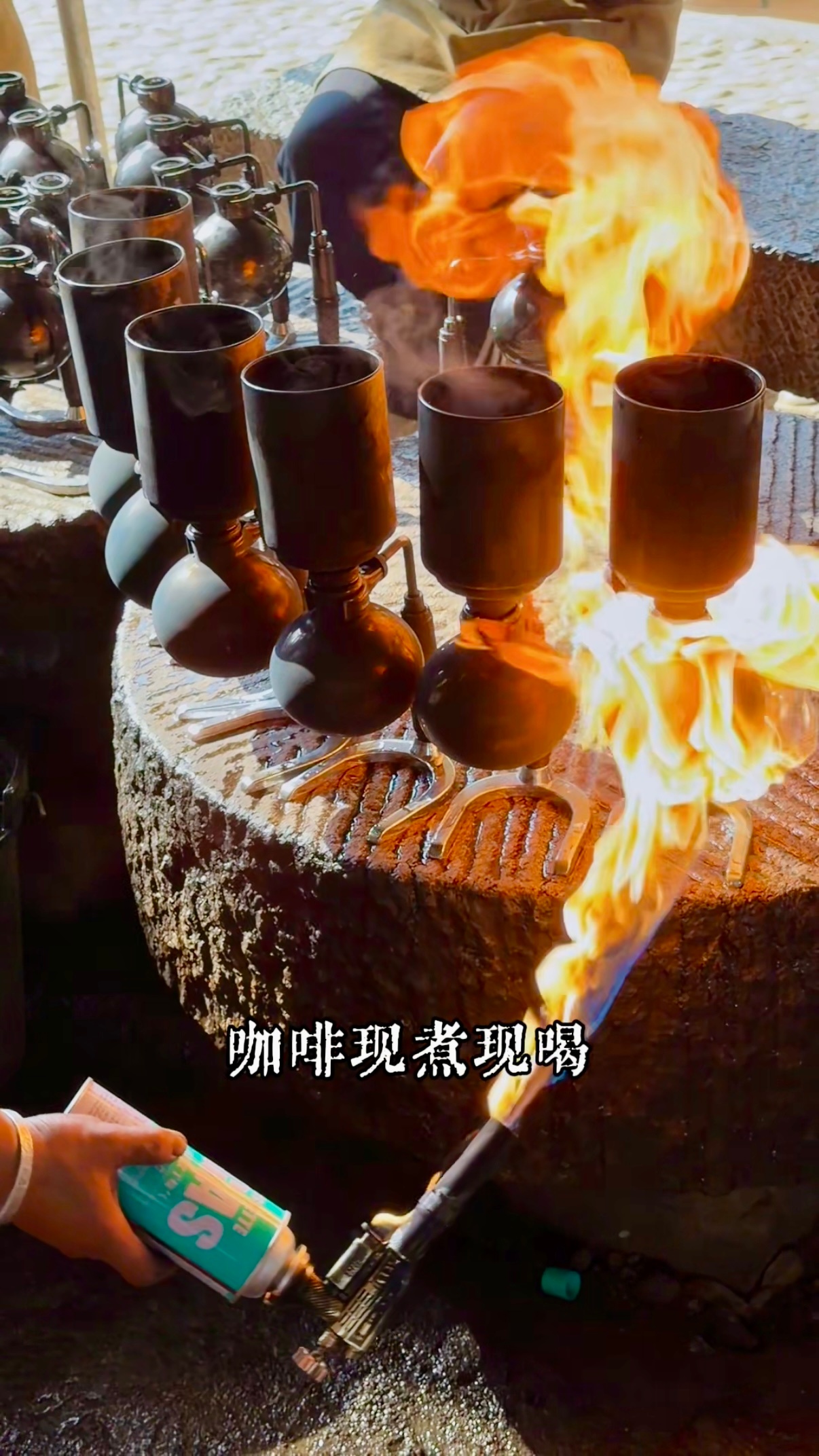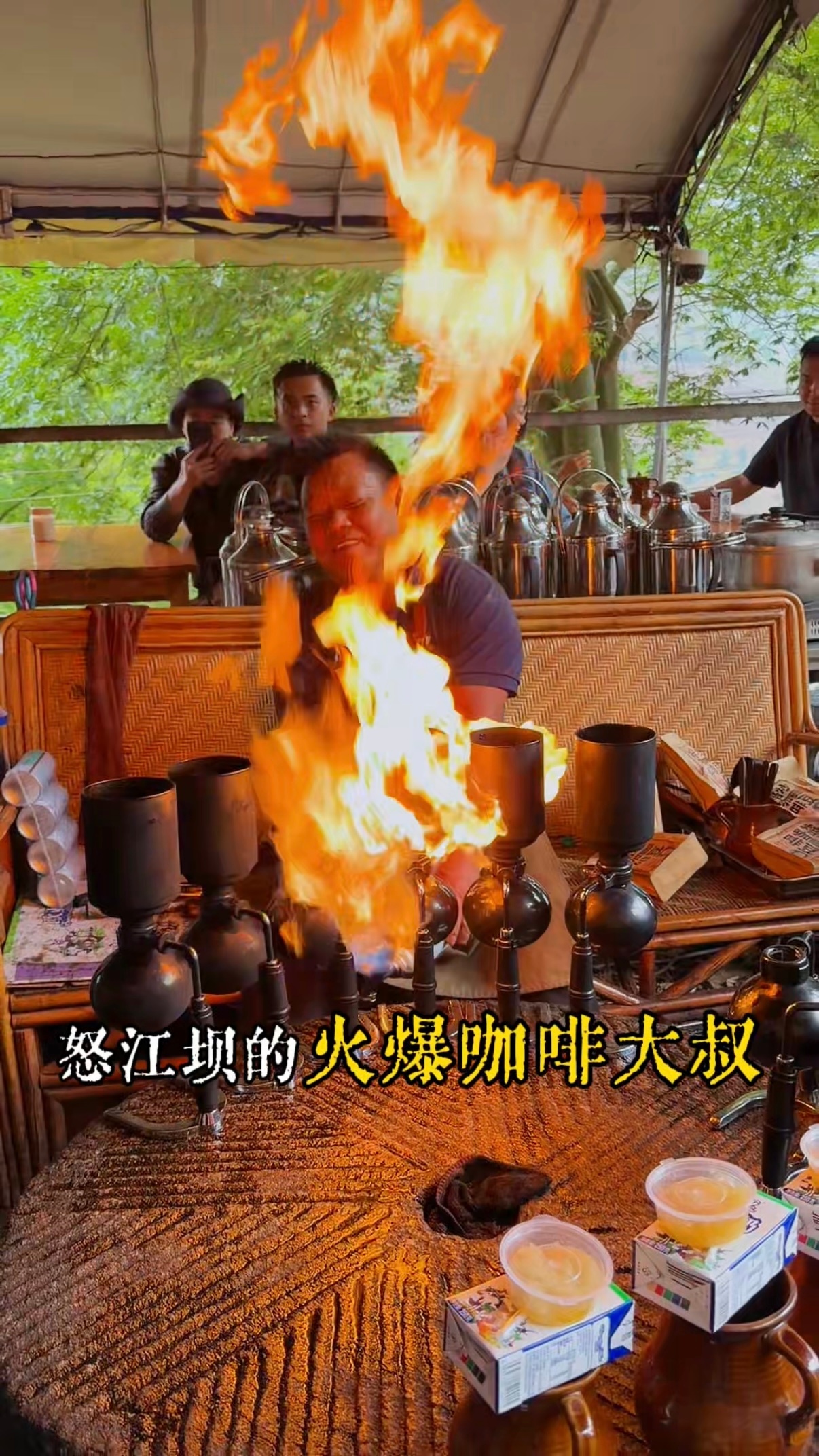 带豆花客人来潞江坝喝火烧咖啡,这里没门面没排场,一把火一个壶,一干就是十几年。别人玩花样,他玩实在,豆子自己种,咖啡现煮现喝,味道够正够香。算是全产业链主理人,以前知道的人少。如今大叔火了,来找他的人越来越多,我们也是从丽江开车5小时慕名而来的,可他还是那个认真煮咖啡的样子。这大壶咖啡,够4-5个人喝,只卖30块,这份踏实与坚持,真值得很多人学习!云南旅游攻略君云南咖啡保山小粒咖啡 保山·双虹桥路边咖啡馆