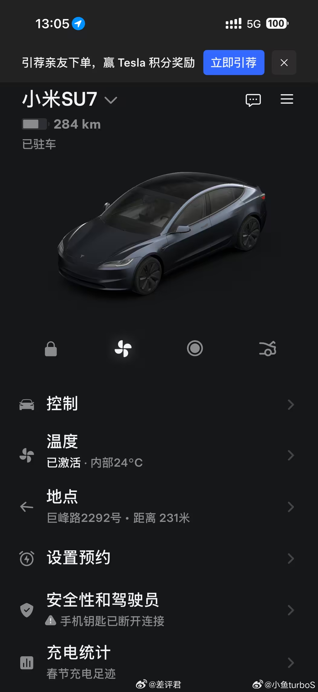 #差评说车# 刷到说理想同学App新增了特斯拉车控功能。第一反应是:???赶紧让开特斯拉的同事试了试,原来是需要在理想同学App里登陆下特斯拉账号进行授权,走特斯拉公开的API协议来进行车控。