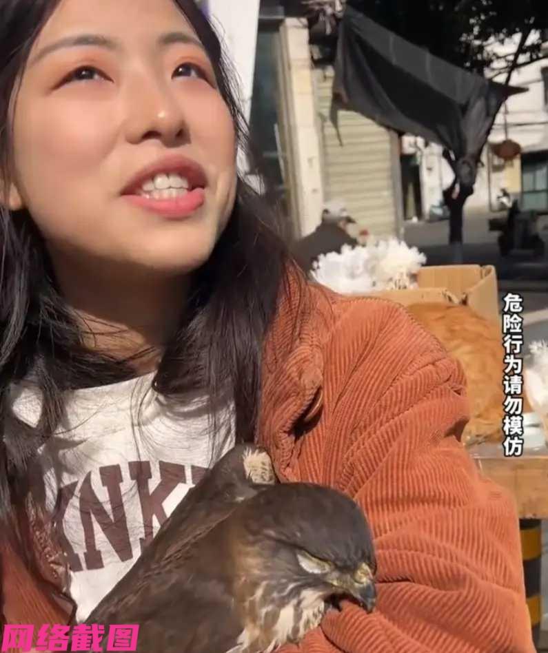 四川有女子刚出门,不知哪里突然飞来一个大鸟就趴在了女子的臂弯上,女子一时之间恍然