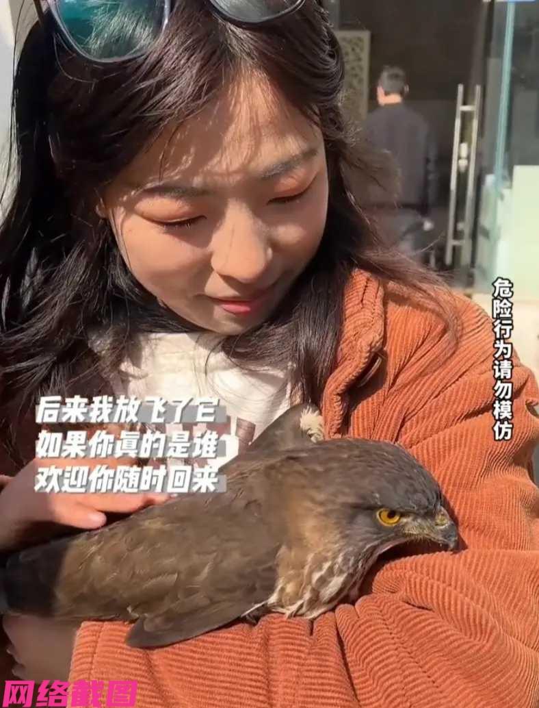 此刻有人认出眼前的大鸟为游隼,还猜疑是不是女子饲养的,女子懵然,咋可能,看这只游隼也没有见受到什么外伤害,随后这只猛禽安静在女子的怀里睡着了,令人称奇。