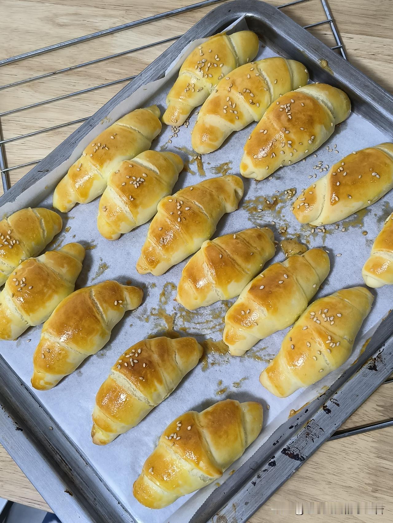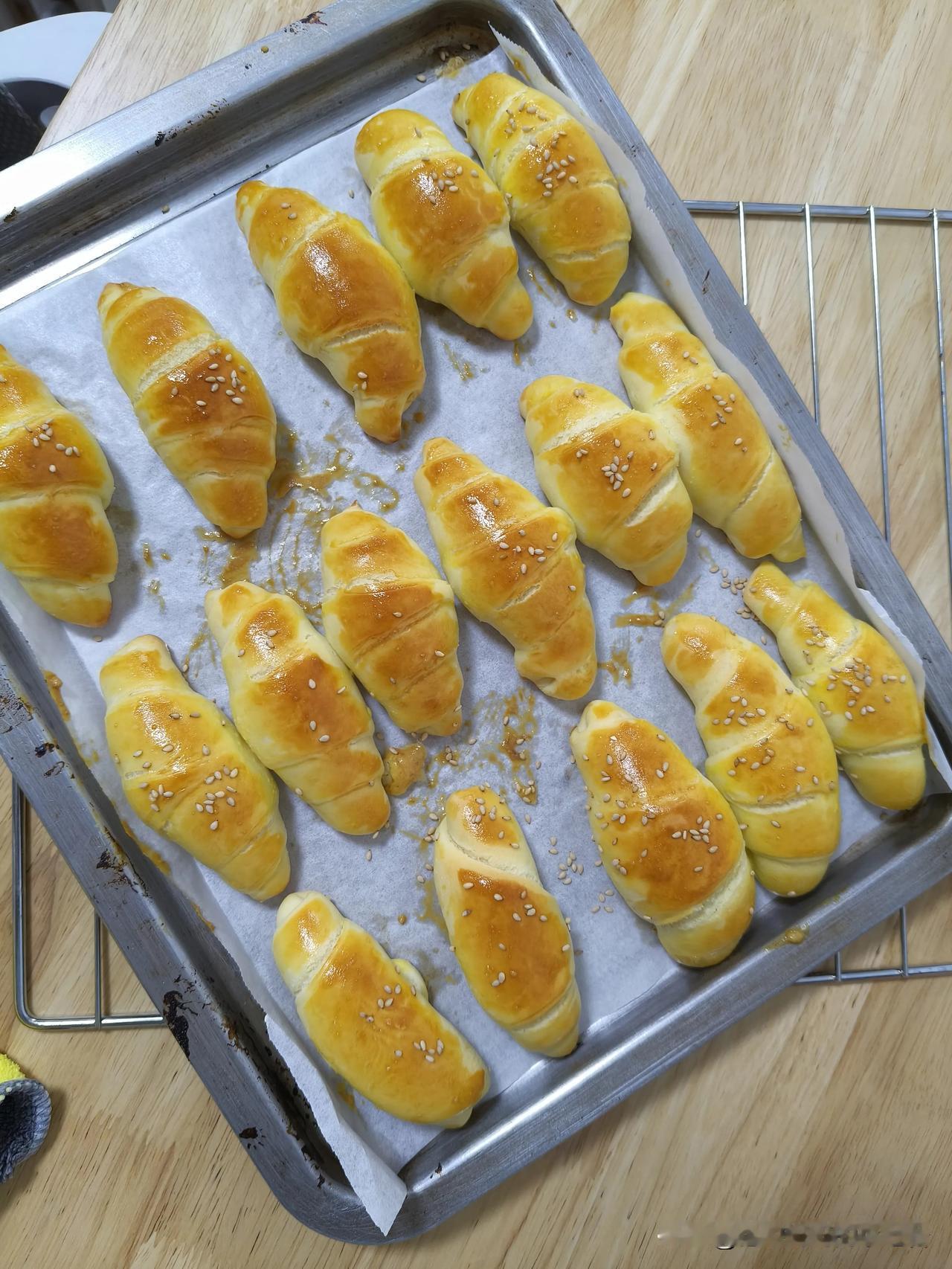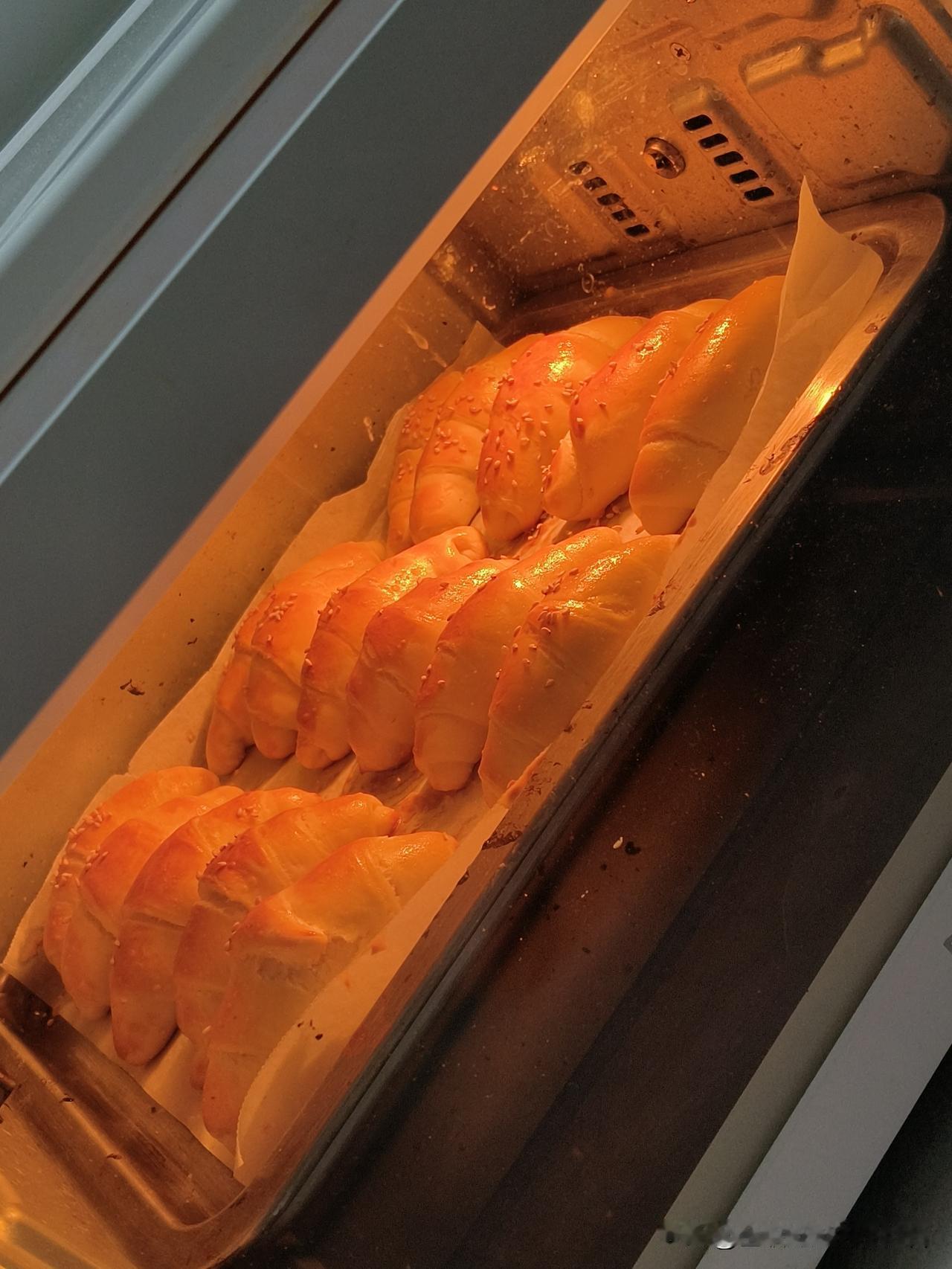 每天最治愈的事,就是给女儿做美食。 今天又烤了一炉牛角包,刚出炉香得满屋都是,