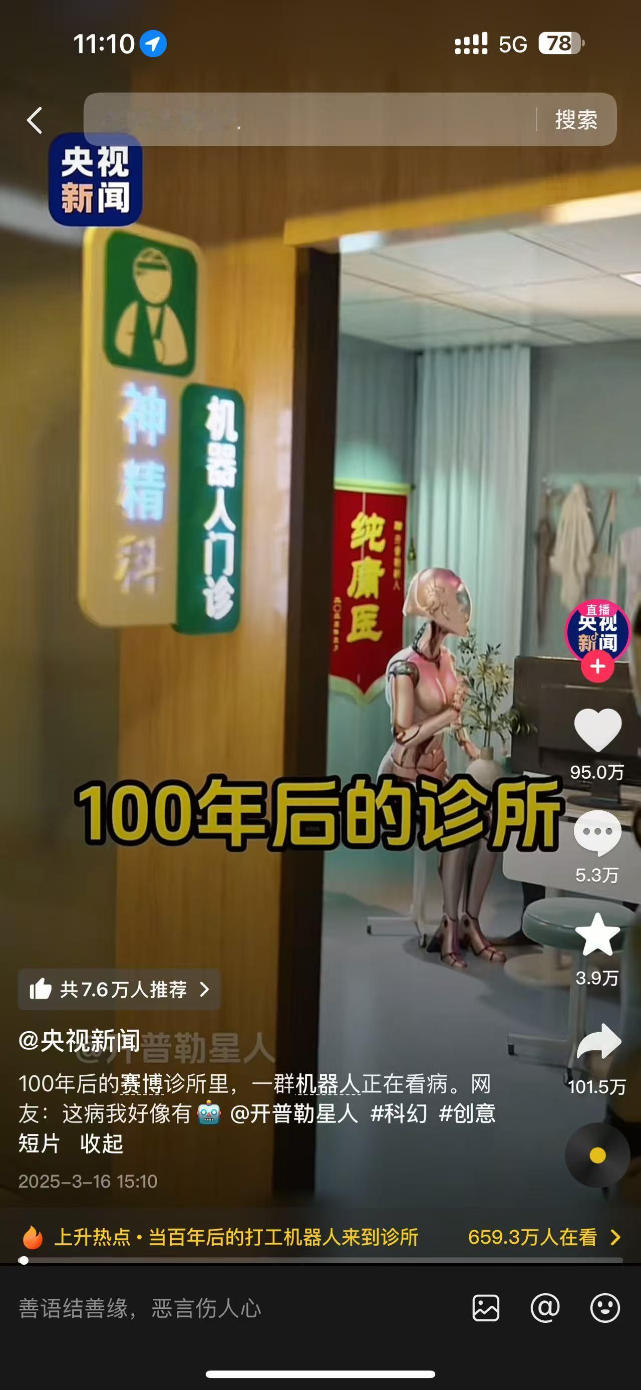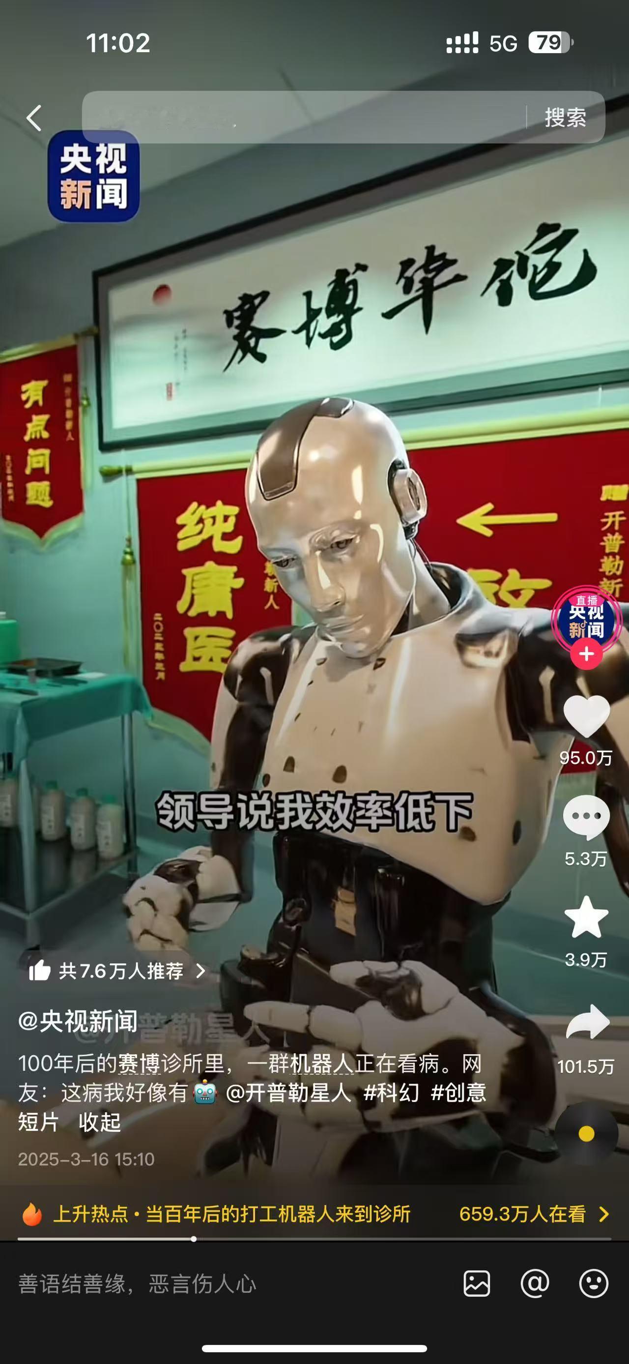 刷到当百年后的打工机器人来到诊所系列,我笑出了声!一群机器人吐槽上班的烦恼去看病 ,不是被老板说效率低,就是内存不够开始内耗...要不是我之前去参观过汤臣倍健透明工厂,我差点就信了!真实的机器人可是高效卷王!