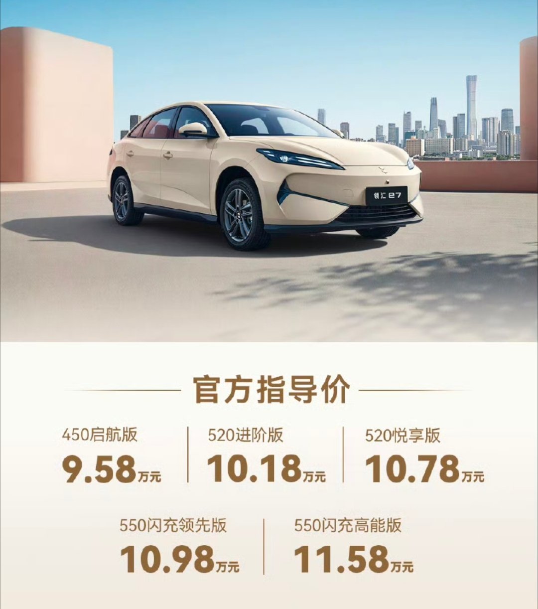 领汇E7(原型海豹06,免一年服务费),领汇E5(原型秦Plus),领汇E9(原型汉),领汇M9(原型夏),全具有闪充功能,百万公里锚定。其中网约车款式,6年60万公里质保;出租车款式,8年90万公里质保。商用卡车10年80万公里质保。家用车至少包含6年15万公里质保(首任车主三电终身质保),而且质保提高2.5%比例。