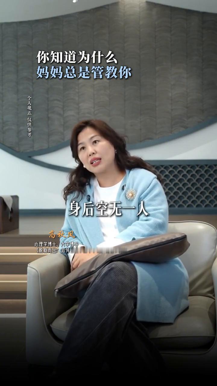 你知道为什么妈妈总是管教你? 高秋风,心理学博士、究学通行。 你可以不服妈妈的管,那就活出让她放心的模样。她的管其实都是怕,怕你未经世事容易走弯路,怕你心地柔软遇事会吃亏,怕你未来风雨兼程时身后空无一人,怕你辜负青春将来徒留遗憾。