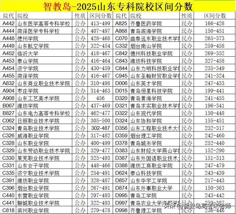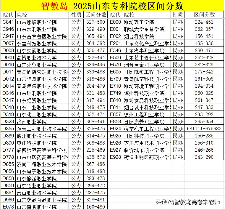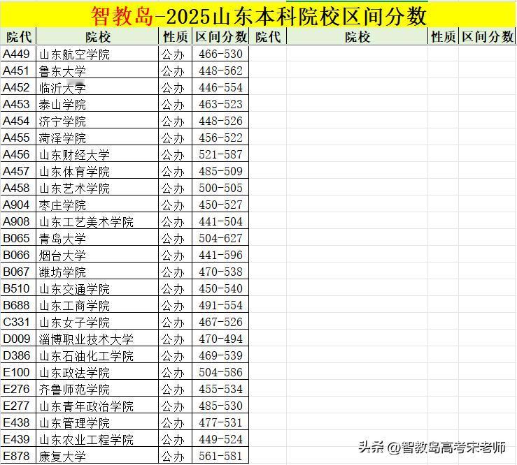 全国高校在山东录取的公办本科、民办本科分数范围!