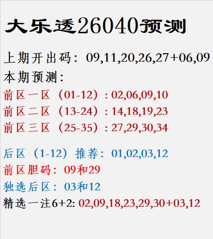 大乐透26040预测 上期开出码:09,11,20,26,27+06,