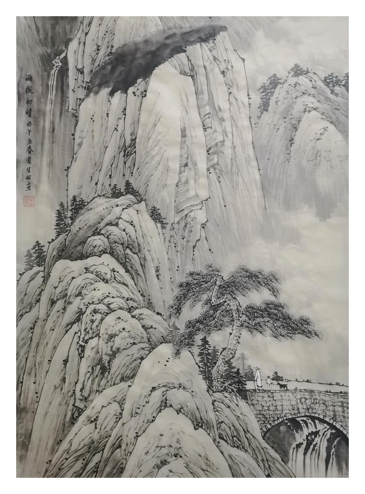 中国山水画原创作品欣赏:传统水墨山水画 尺寸:四尺仿古水墨山水画 适合客厅或书房