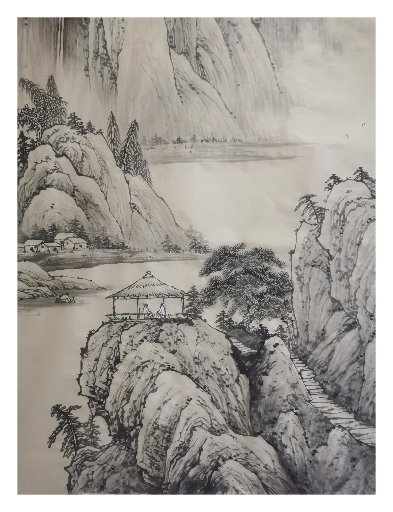 中国山水画(原创作品)欣赏:传统水墨山水画 《春山幽静图》尺寸:四尺(138x6