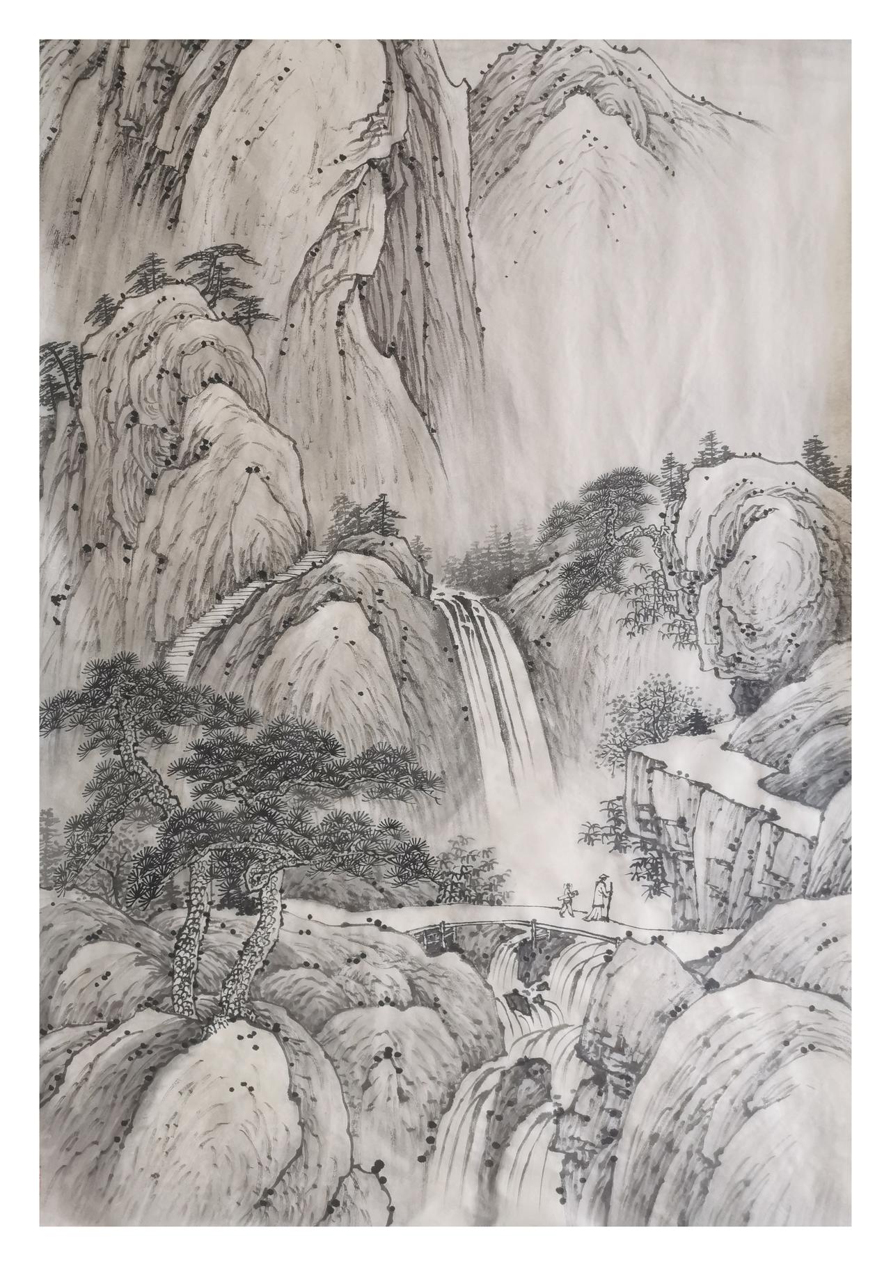 中国传统山水原创作品欣赏:传统水墨山水画:
