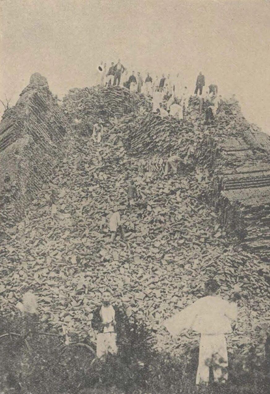 《太平年》吴越故地风物:雷峰塔。图一为1919年的雷峰塔;图二为1924年雷峰塔倒掉之后的废墟。