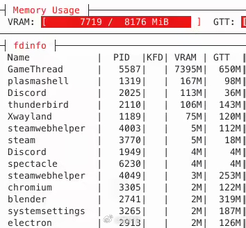 所以本质上,这套方案并非直接减少显存占用,而是优化了有限显存的分配优先级。对于12GB显存的显卡而言,这套方案的效果可能并不明显;但对于8GB显卡,这一优化可以充分释放其潜力。就是目前仅支持Linux,同时只有intel和AMD的GPU能够使用,N卡由于显存管理部分是闭源的,所以无法使用。。。