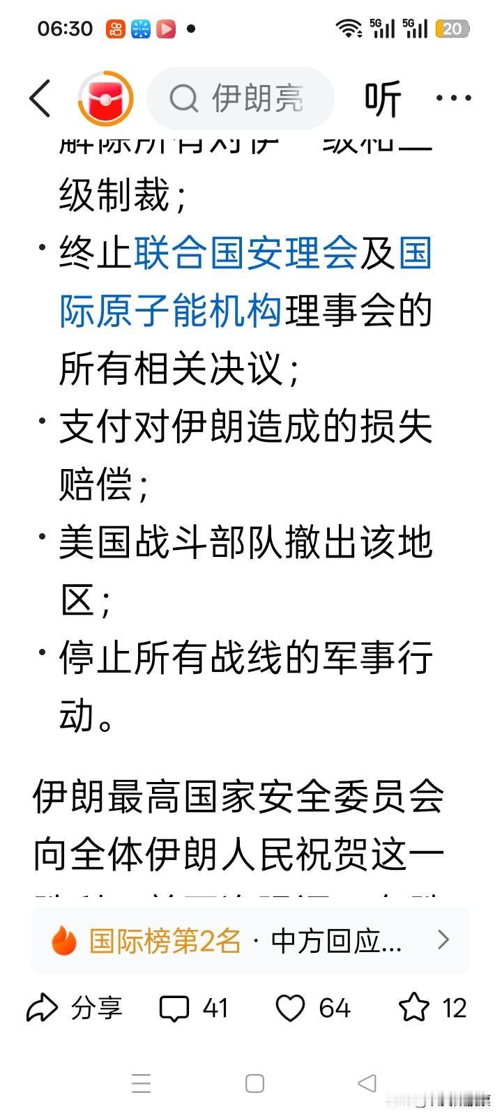 什么“不再军事行动”、“承认霍尔木兹海峡控制权”、“解除所有制裁”、“赔偿战争损失”、“撤军停火”……一条条写得冠冕堂皇,可但凡对美国有点认知的人都明白,这玩意儿连一张废纸都不如!