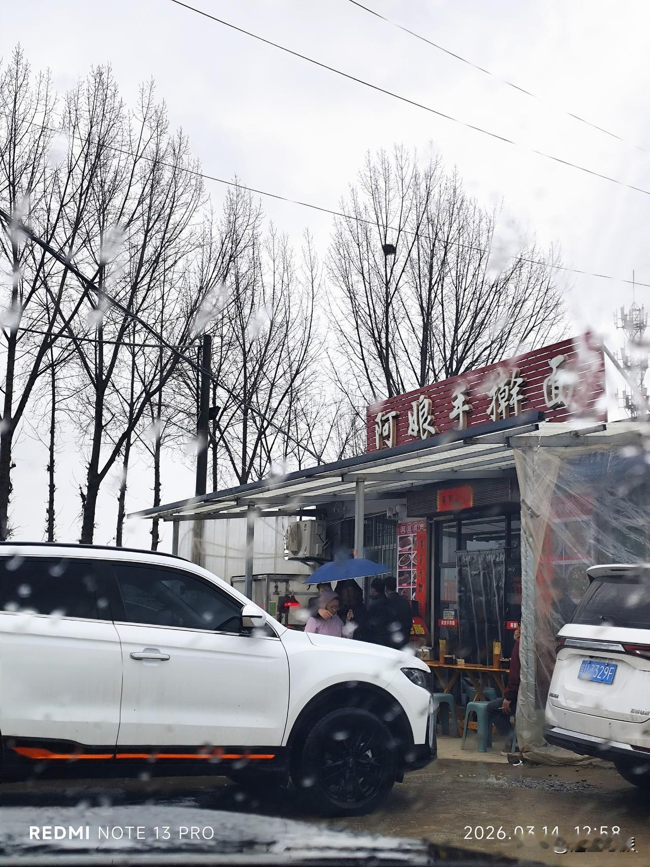 不想等也不能扫兴而归,幸好我还有第二选项,又来到几公里开外的另一家手擀面店,地理位置在广场对面,门口也好停车。