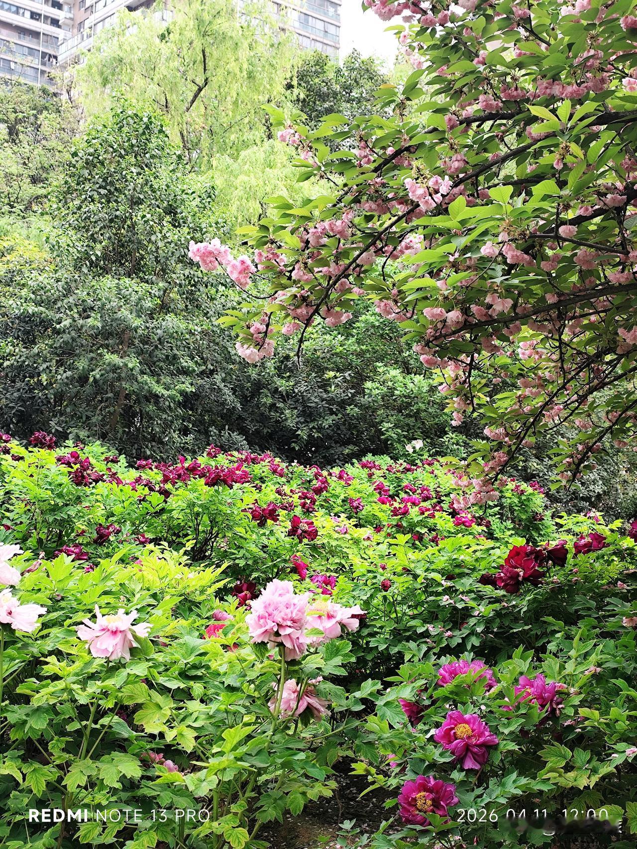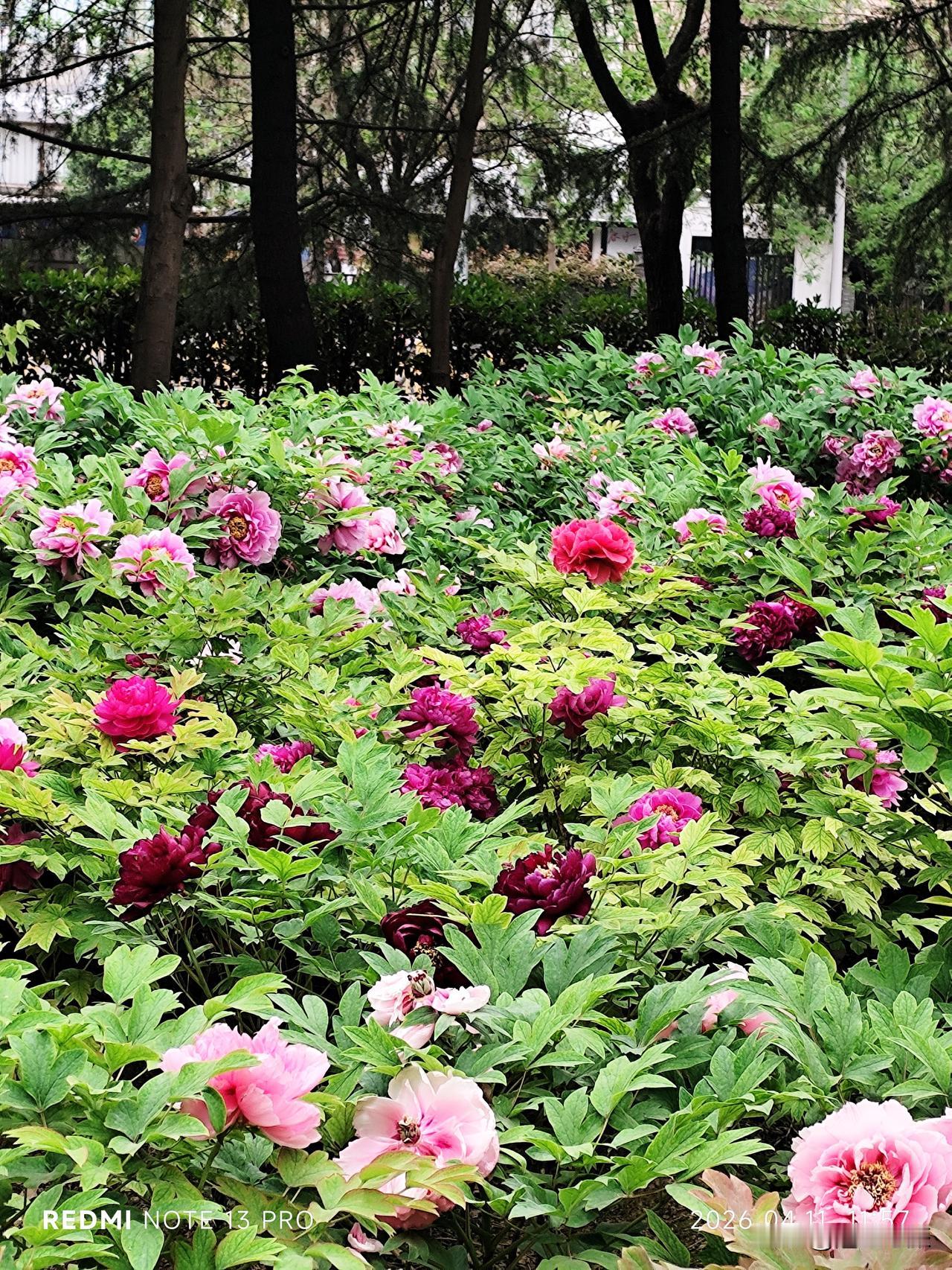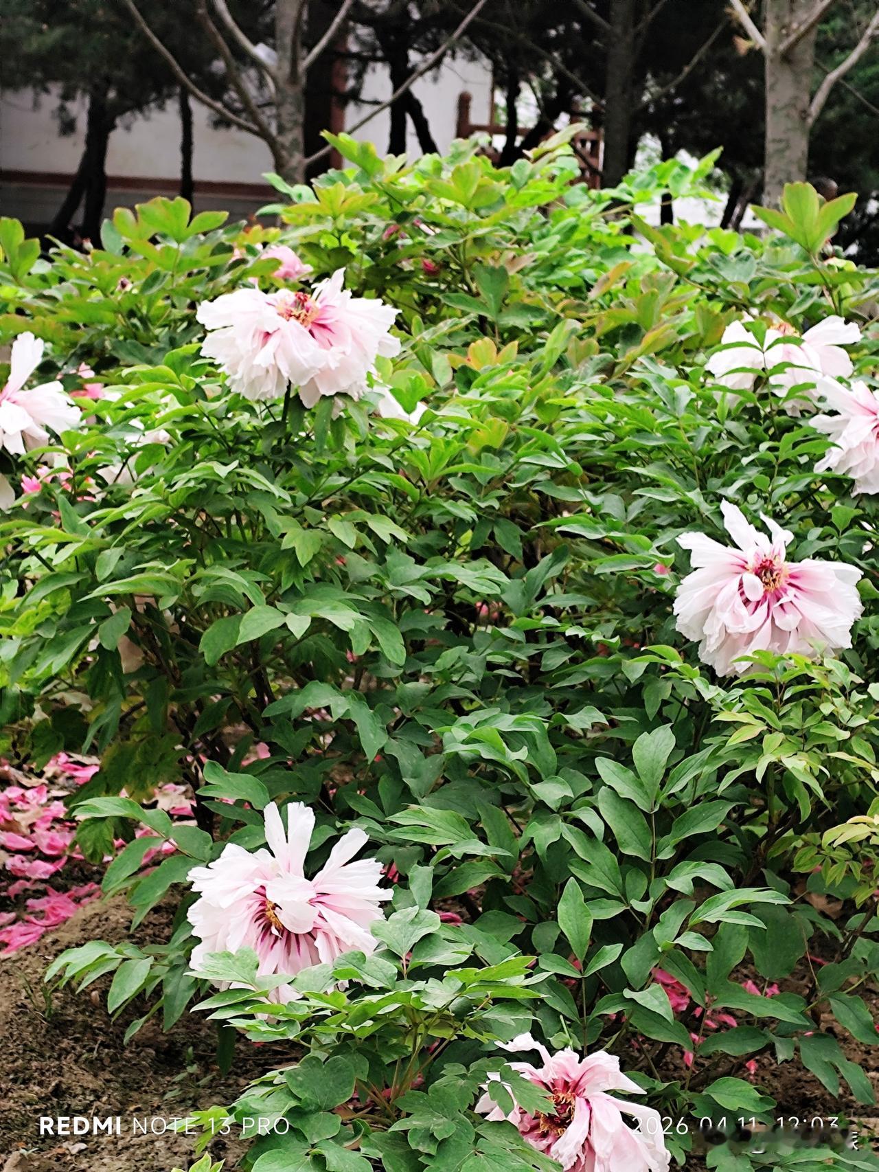 看花沿曲径缓行,两边牡丹丛丛,虽花瓣略卷、色彩没有初绽时的浓艳逼人,但也沉静温婉。那层层叠叠的花瓣依旧舒展大气,红的沉稳、粉的柔和、白的清雅...