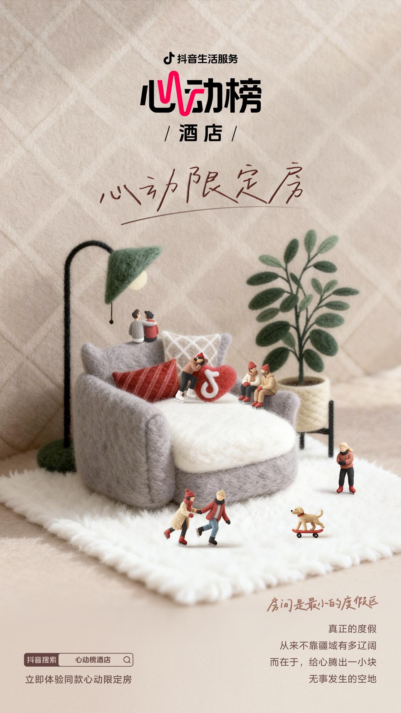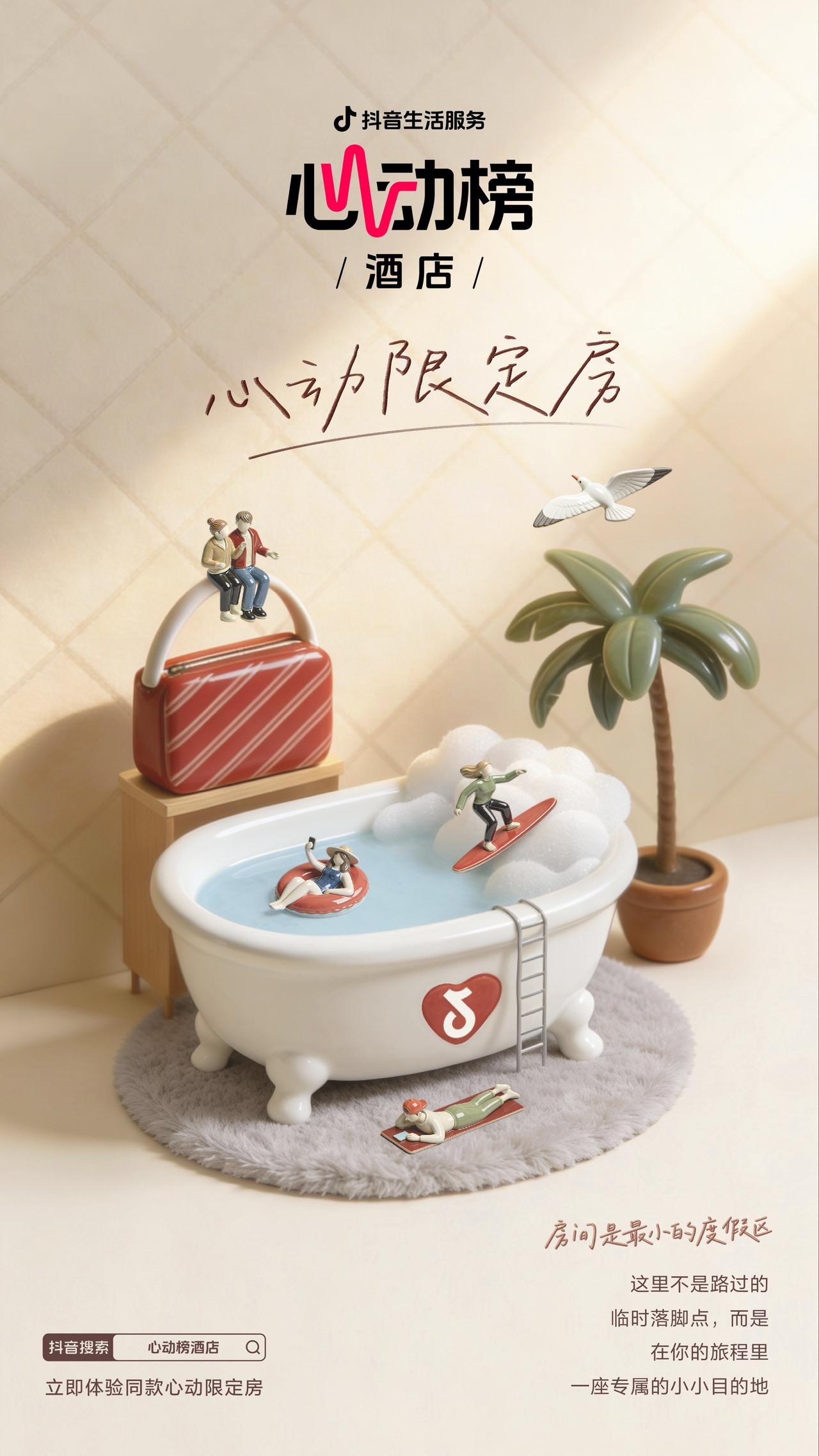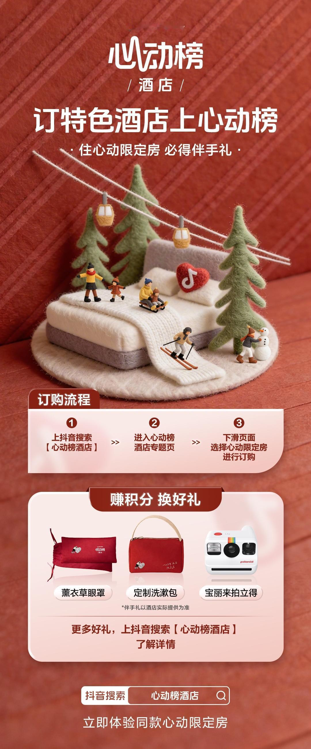 怎么找到它们?在抖音搜索“心动榜酒店”,进入活动会场,即可发现“心动限定房”专区,刷短视频时,也可以多留意“心动榜酒店”这个官方账号,开启你的旅行灵感,帮你持续挖掘具备独特体验的心动酒店。