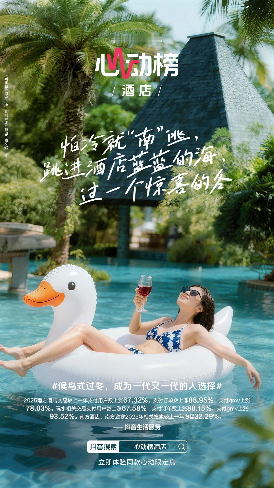 从1月1日起,榜单中的43家酒店率先联袂上线抖音生活服务“心动限定房”,无论你向往哪一种冬天,都能找到心之所向。