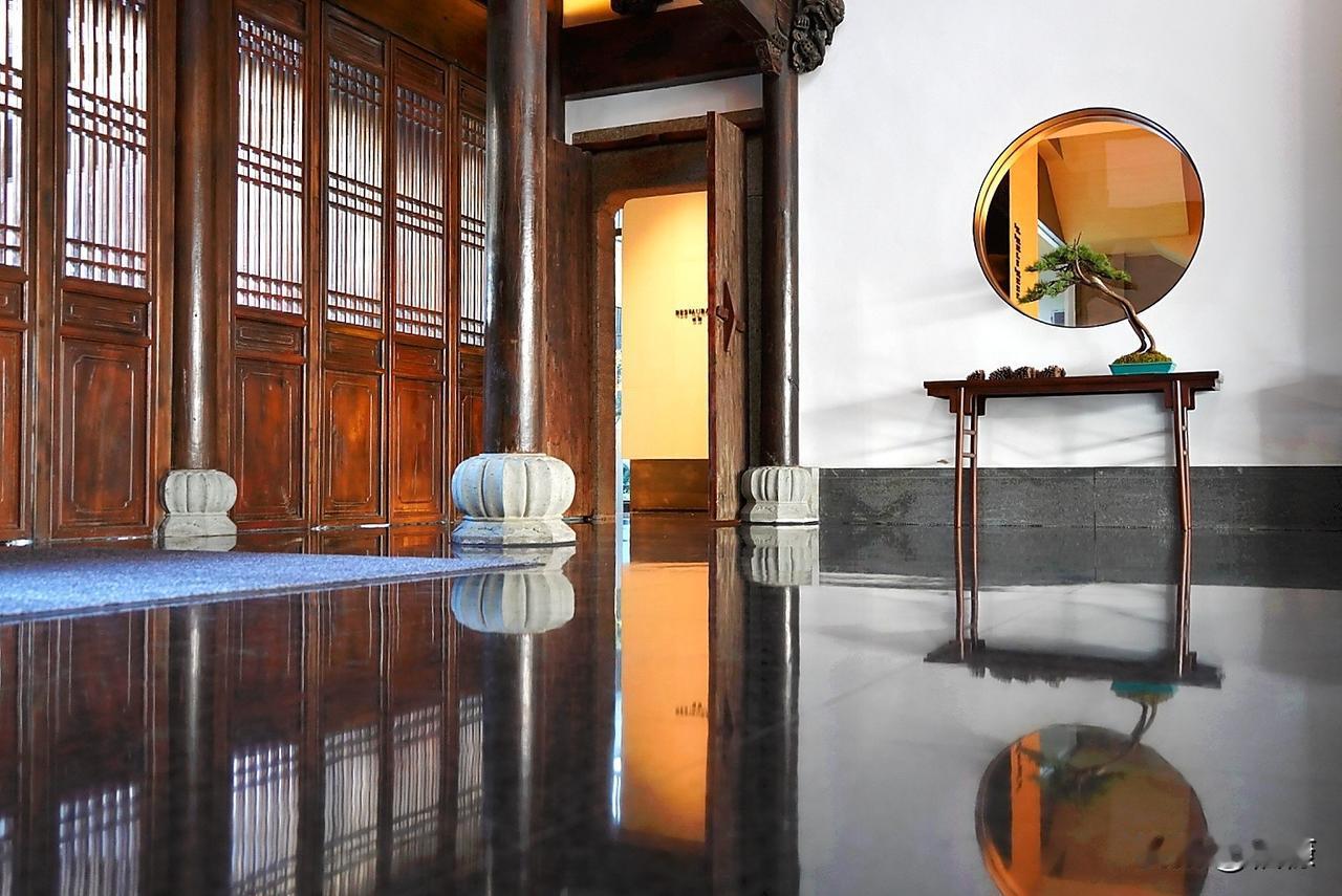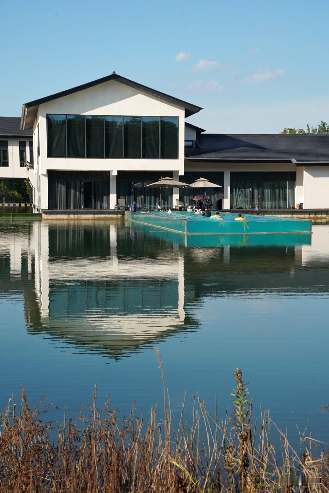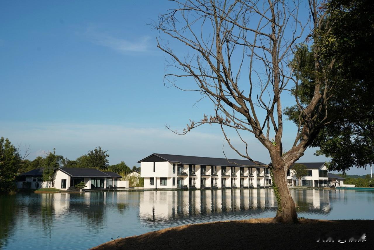 天目湖安悦酒店占地广阔,自成体系,沿湖一圈的步道都是酒店范围,业主亲自参与了酒店的布局和设计,建筑融入了徽派古建的天井和江南园林,为了居住舒适性,增加了很多中庭和玻璃幕墙(采光好),枯山水和真山水相映成趣。