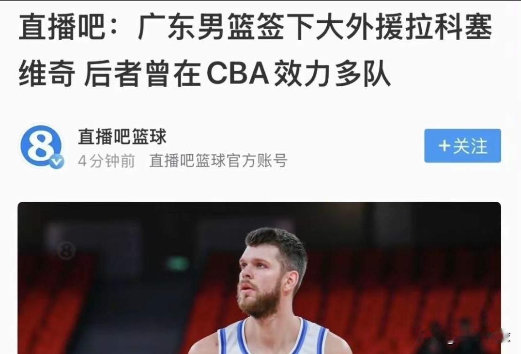 根据姓名媒体人的爆料,曾经效力浙江、吉林和宁波的CBA老熟人,身高211的大外援拉科诺维奇要加盟广东了