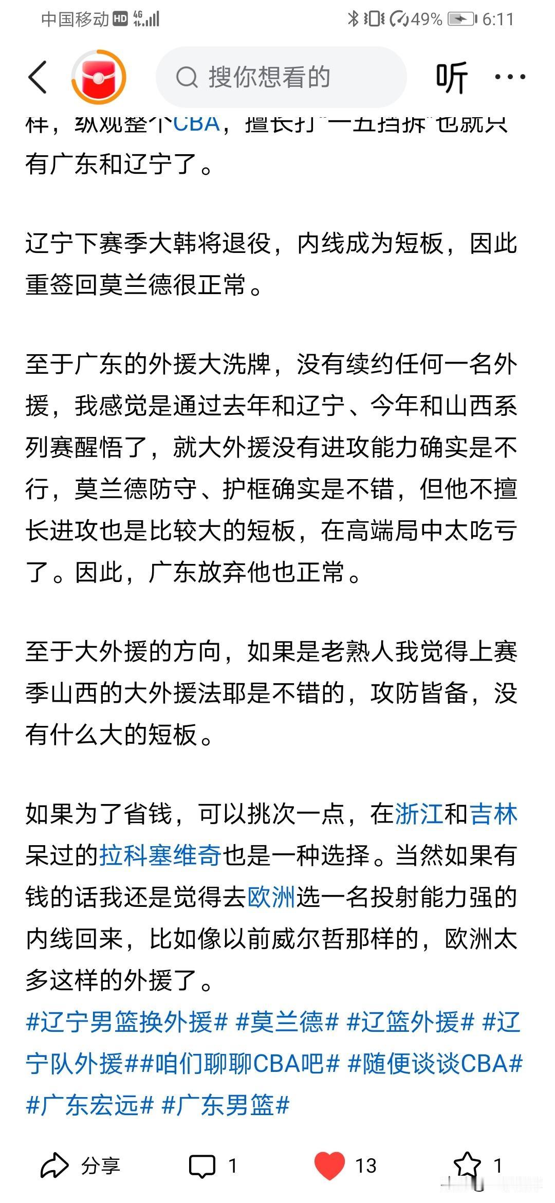只不过我没想到我被我说的回旋镖砸了,本赛季我其实一直认为拉科诺维奇这种能用且不贵的外援是最适合预算有限的辽宁的,结果最后却来了广东[捂脸][捂脸][捂脸]广东宏远 CBA 朱芳雨